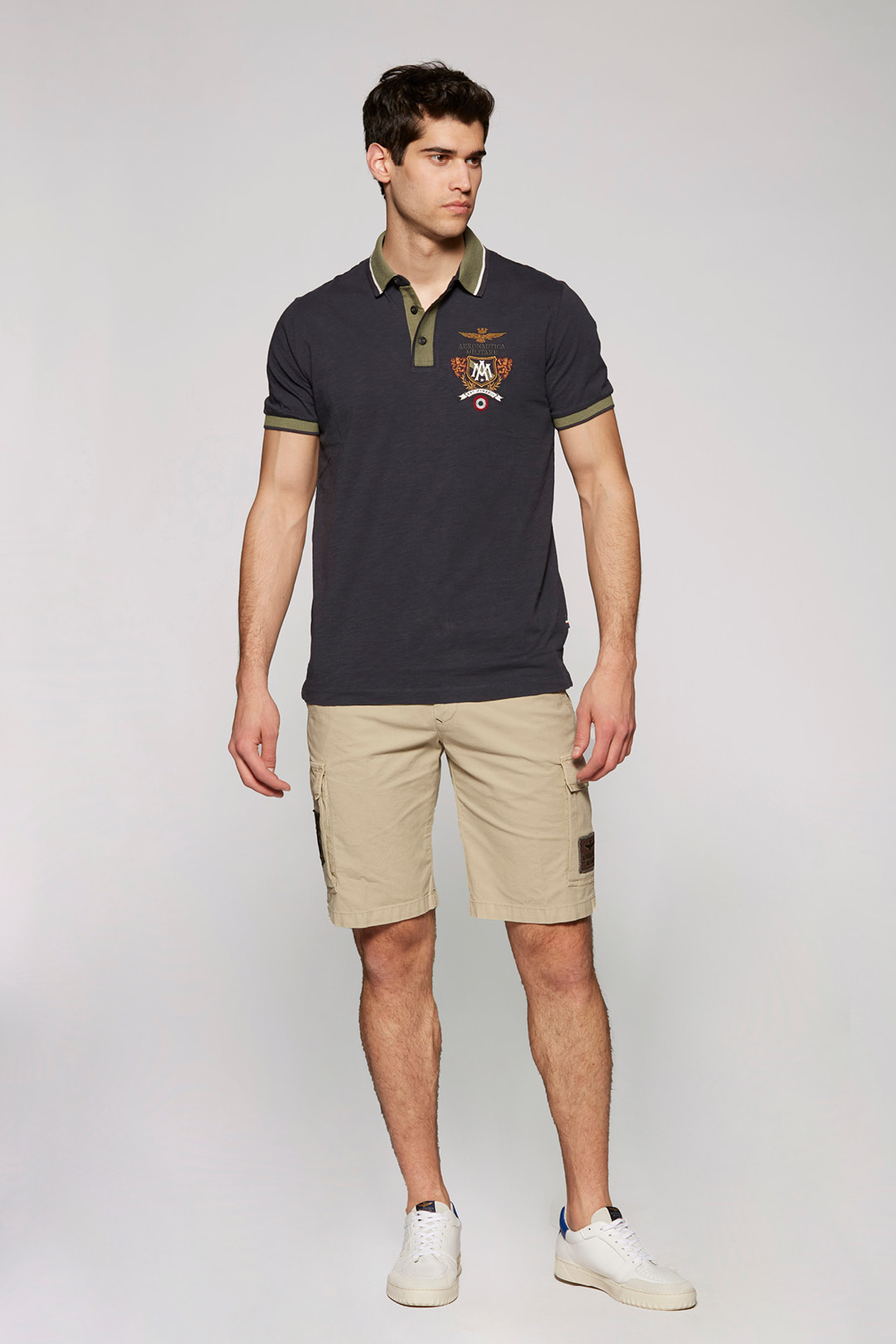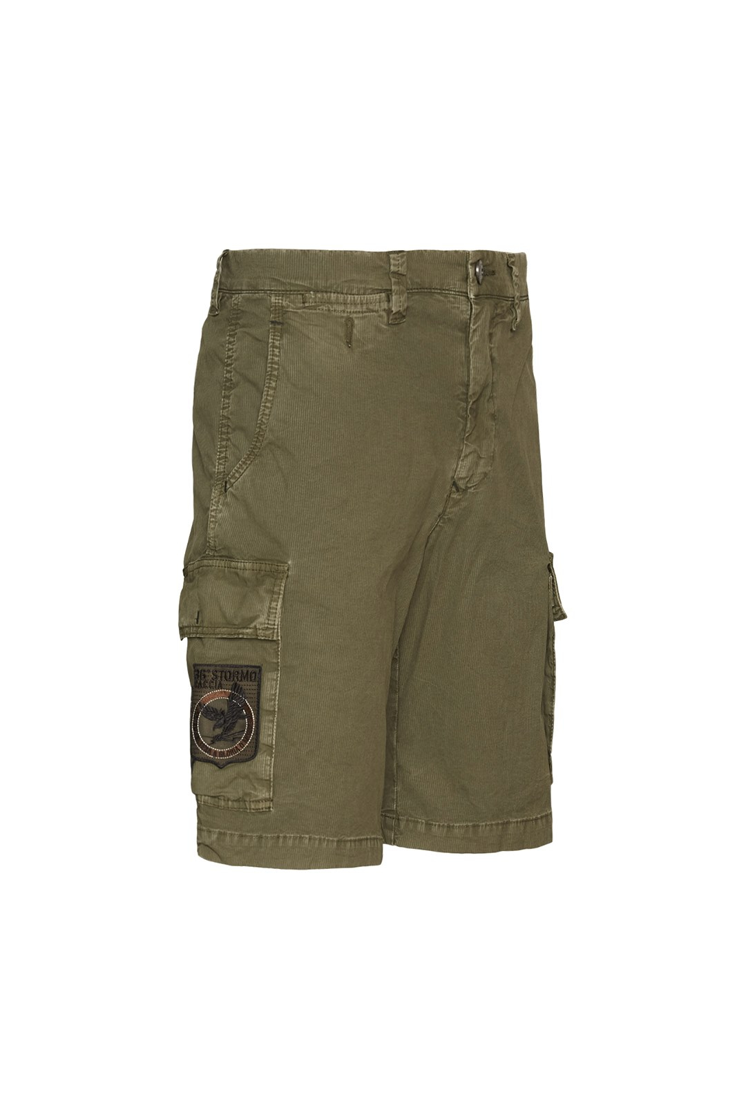 Multi-pockets Bermuda shorts in striped gabardine that are characterized by patches applied on the pockets.