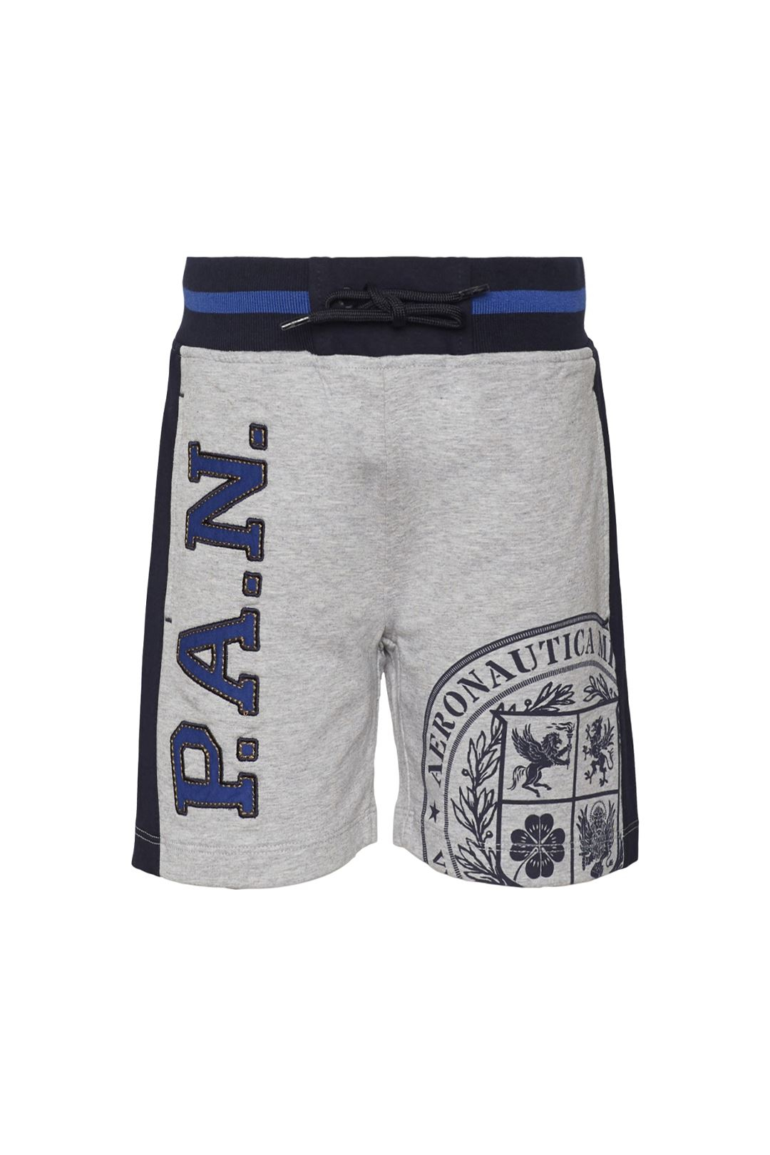 Practical stretch fleece Bermuda shorts decorated with prints and embroidery dedicated to the Italian Air Force and the National Aerobatic Team.