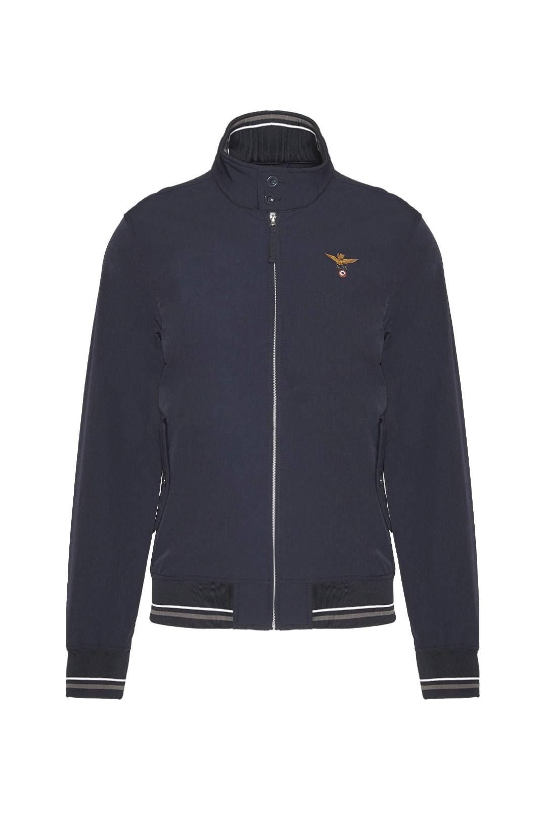 - Ribbed inner collar, cuffs, and bottom with contrasting details