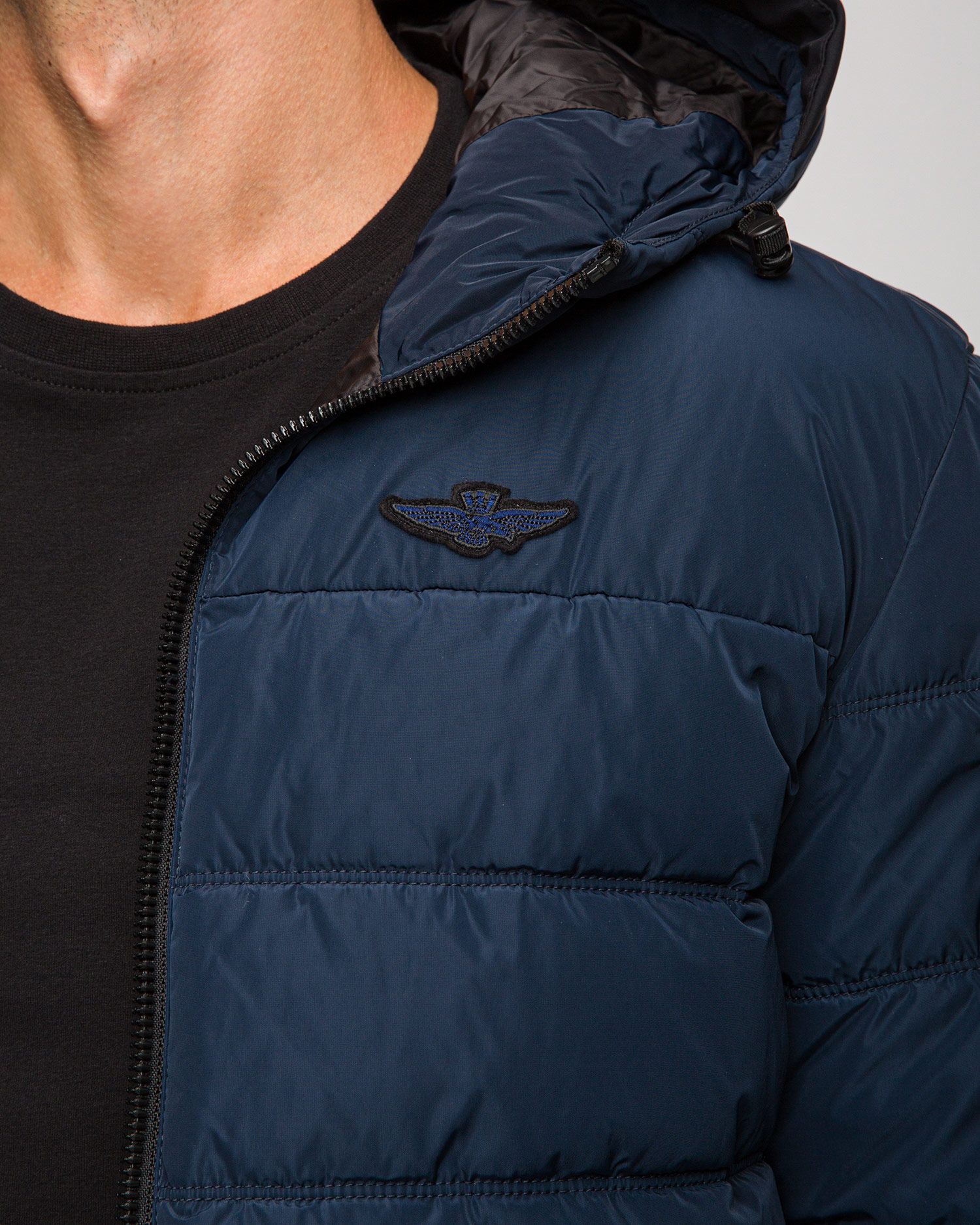 Padded jacket with hood enriched by details in the inner part. Perfect for a casual look.
