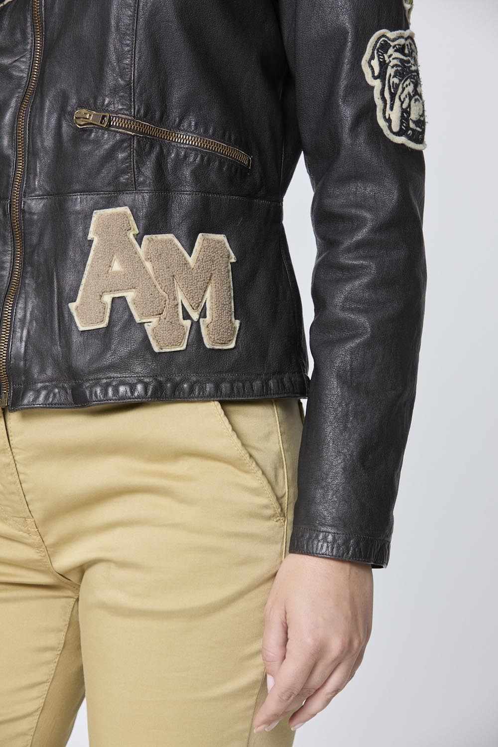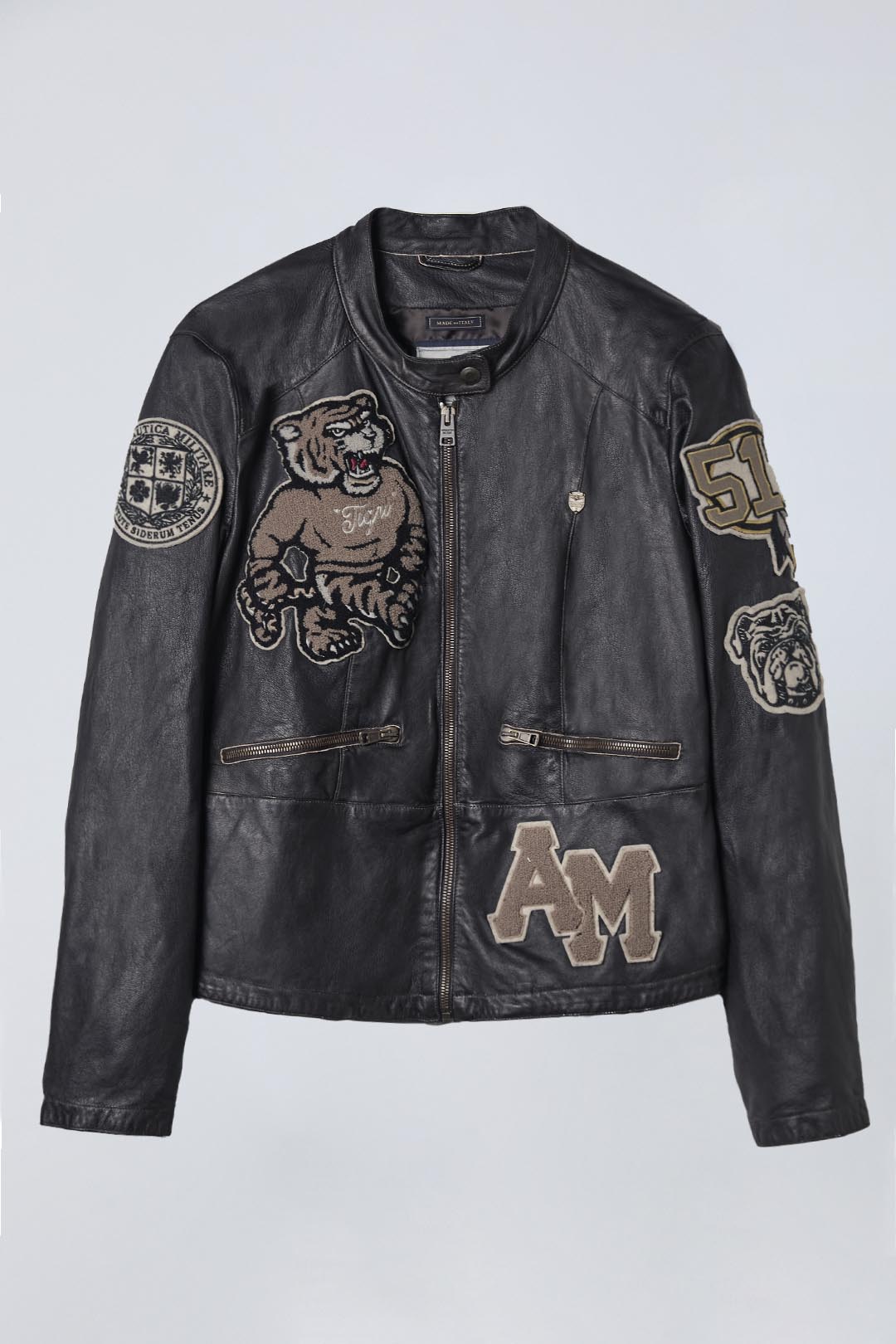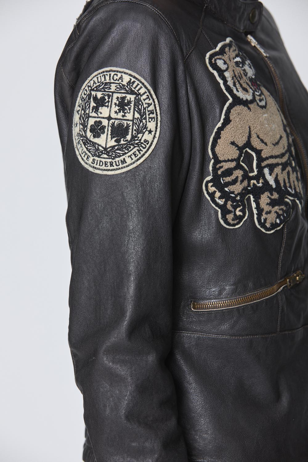 Tato dámská kožená bunda, ručně vyráběná v Itálii, v sobě spojuje řemeslnou zručnost a historii. Je vyrobena z pružné, vysoce kvalitní jehněčí kůže a má složitě umístěné aplikace, které vzdávají hold ikonickým letkám italského letectva. Je to nadčasový kousek, který spojuje tradici s moderním stylem a je ideální pro dobrodružné ženy.