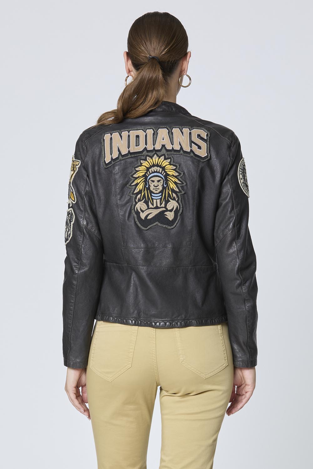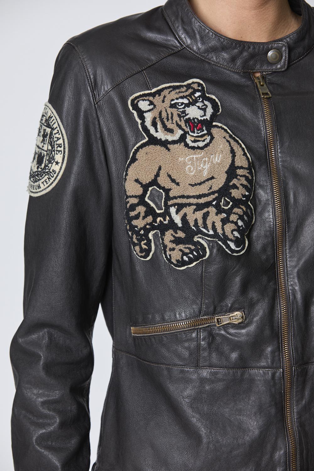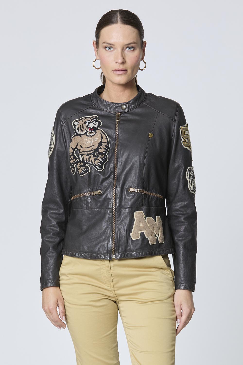 Tato dámská kožená bunda, ručně vyráběná v Itálii, v sobě spojuje řemeslnou zručnost a historii. Je vyrobena z pružné, vysoce kvalitní jehněčí kůže a má složitě umístěné aplikace, které vzdávají hold ikonickým letkám italského letectva. Je to nadčasový kousek, který spojuje tradici s moderním stylem a je ideální pro dobrodružné ženy.