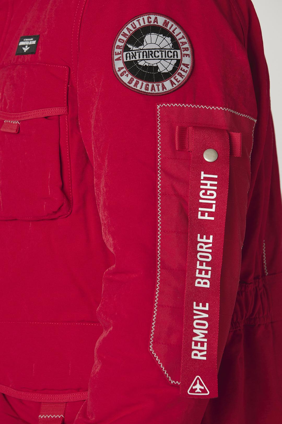 - Štítek s logem na levé straně hrudi, reflexní nášivka a odnímatelná páska "Remove before flight" na levém rukávu