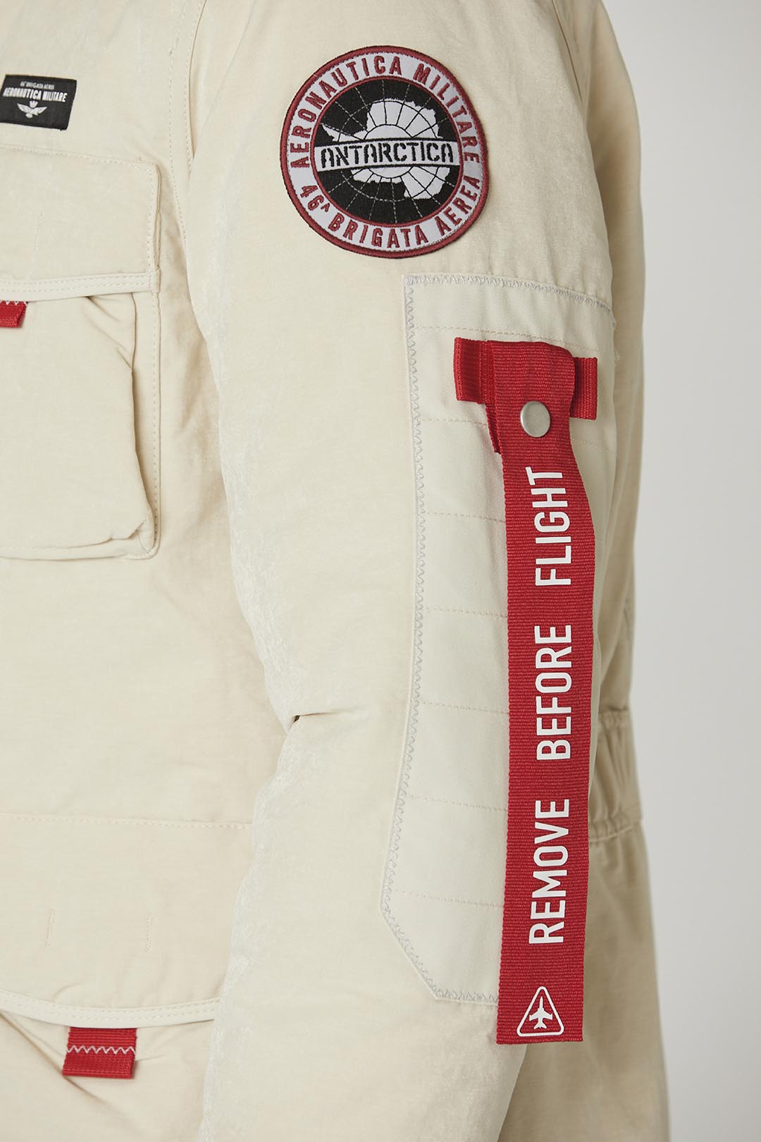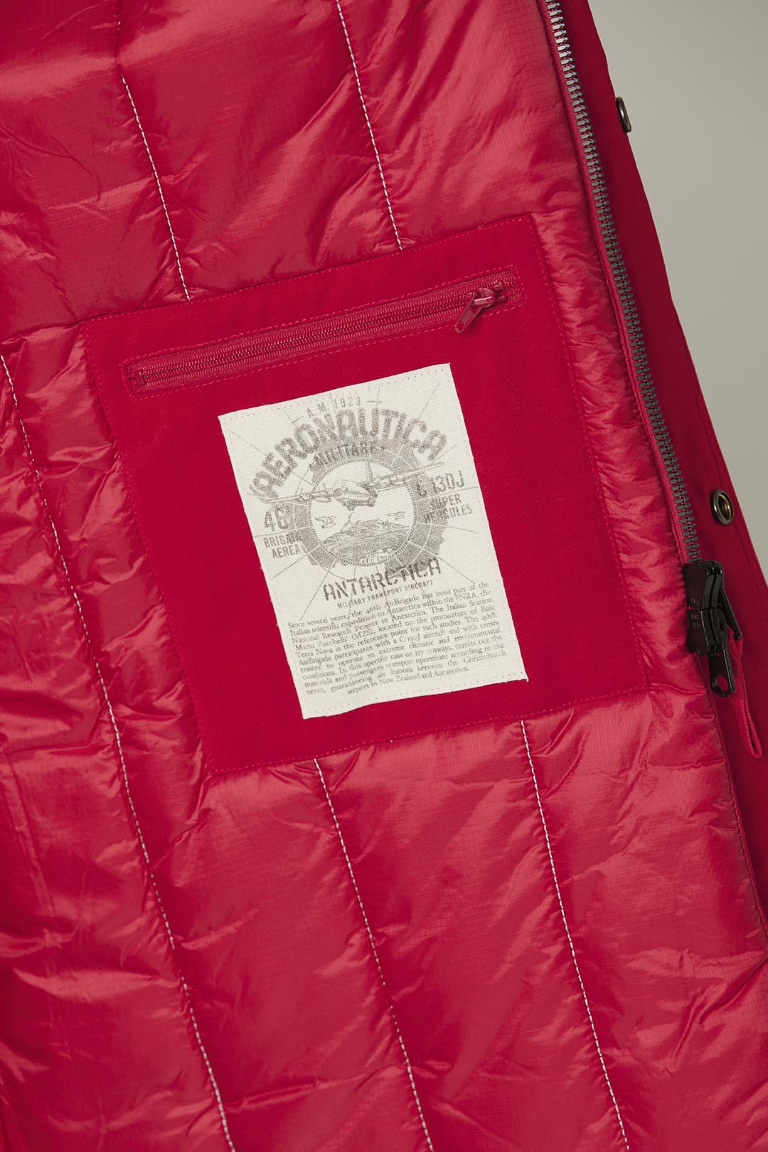 Italská expedice do Antarktidy, které se účastnil tým techniků, výzkumníků a vojenských odborníků z ozbrojených sil zapojených do různých výzkumných aktivit, inspirovala speciální edici kapsle Antarctica. Extrémní podmínky těchto oblastí daly vzniknout vysoce výkonným a mimořádně odolným oděvům. Tato vyteplená parka vyrobená z voděodolné bavlněné tkaniny má výztuhy z nylonu s oxfordskou strukturou, prostorné kapsy s klopou a dvojitou kapuci, která vás ochrání před chladem. Hřejivé polstrování poskytne příjemný pocit tepla, zatímco nášivka a odnímatelná vlastní páska dodají exkluzivní nádech. Dokonalý oděv, se kterým můžete čelit i těm nejextrémnějším situacím.