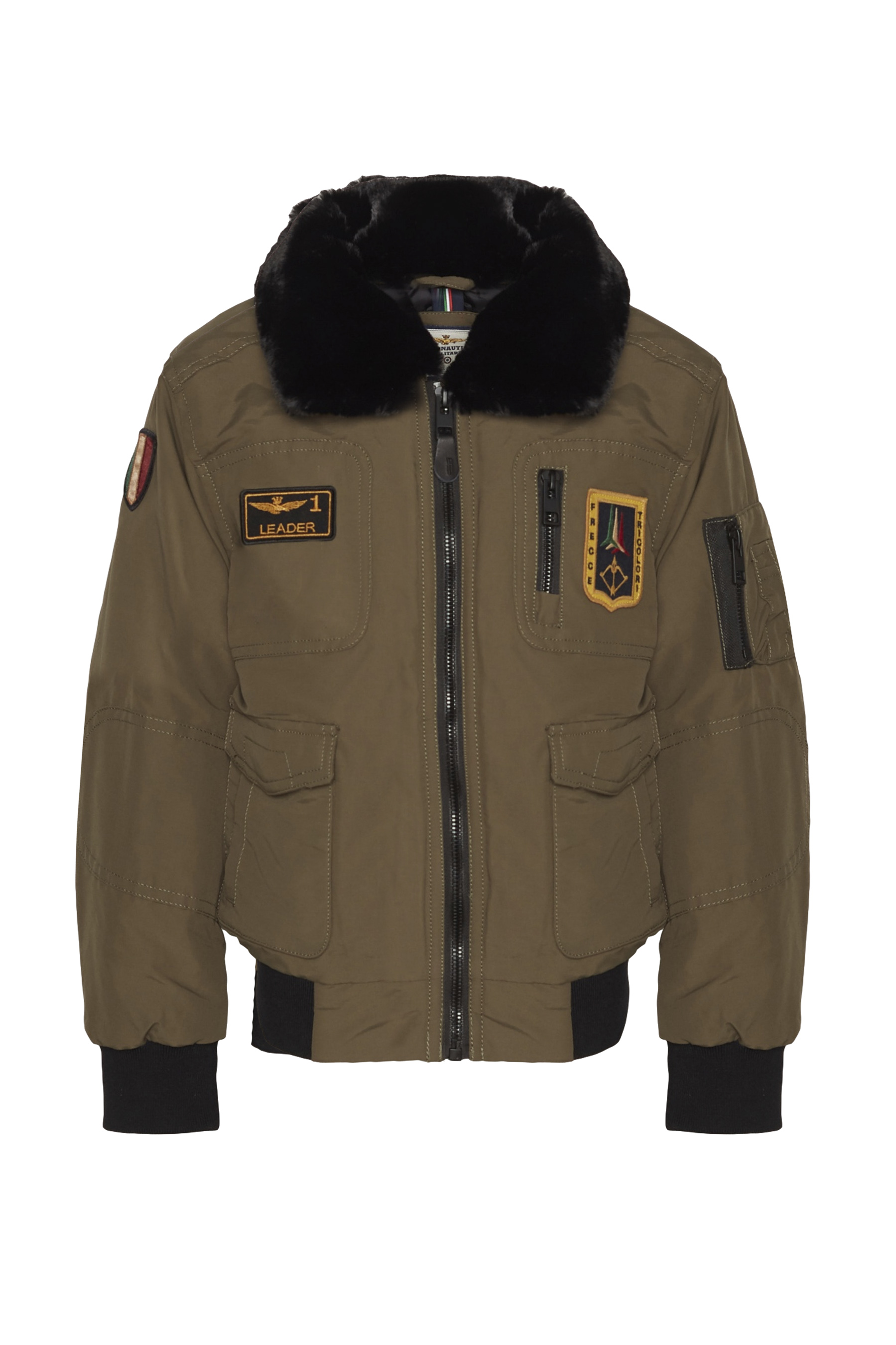 - 'Leader' and 'Frecce Tricolori' patches on the chest