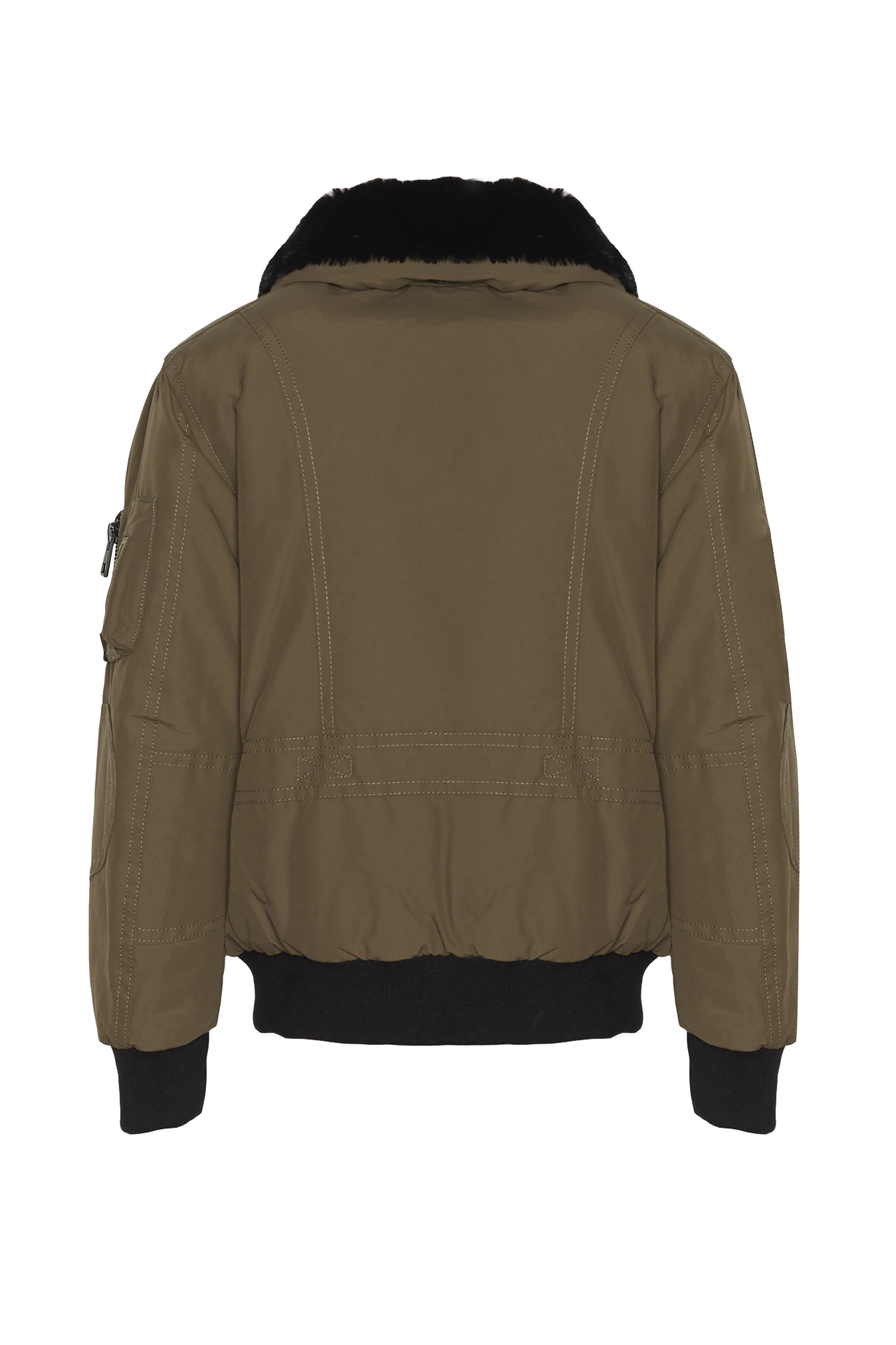 - Removable synthetic fur collar