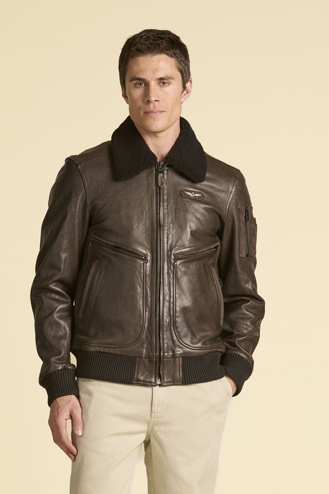 Pánská kožená letecká bunda z jehněčí kůže – Made in Italy