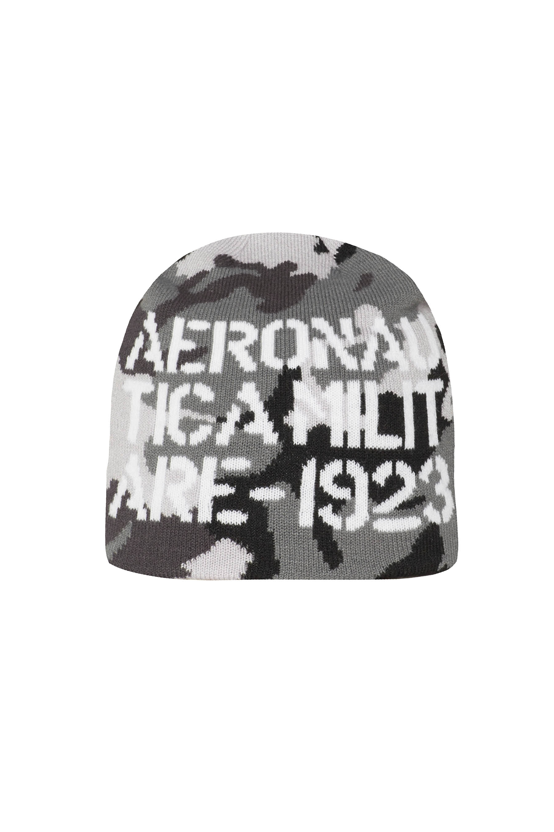 Complete your military-style look with this camouflage beanie. - Camouflage pattern - "Aeronautica Militare - 1923" writing on the front - AM label on the left side 95% Acrylic- 5% Elastane Hand wash