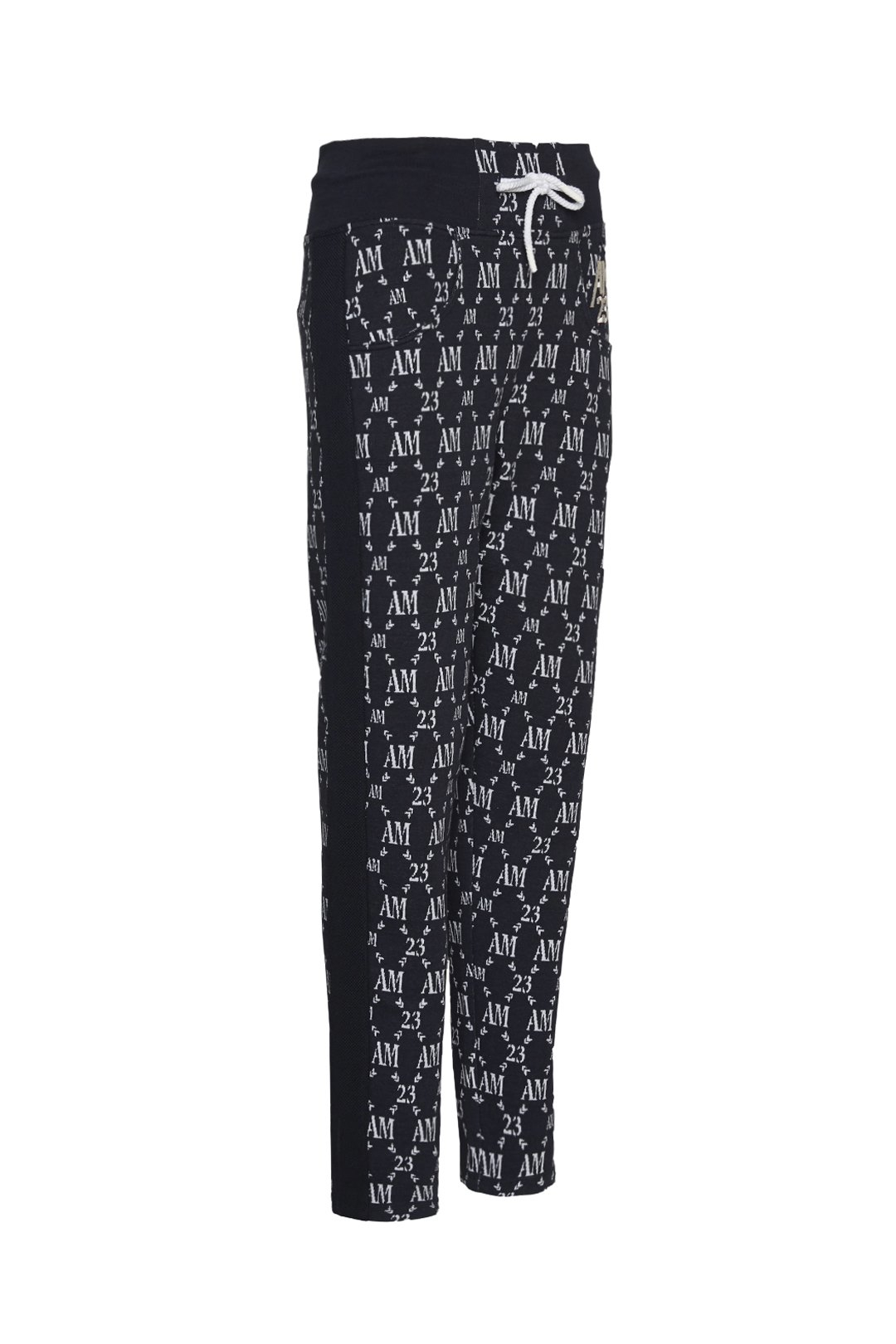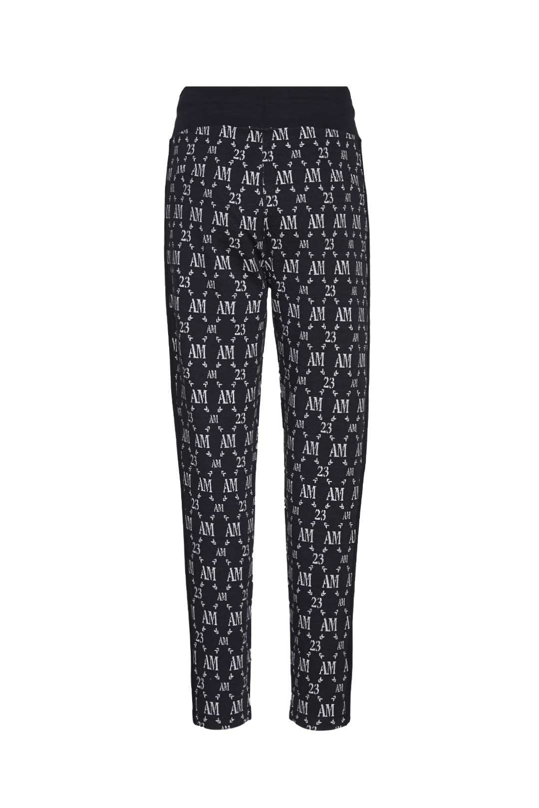 Long trousers with a straight bottom made of a knit-like fabric and characterized by an all-over pattern in which the Aeronautica Militare logo is king.