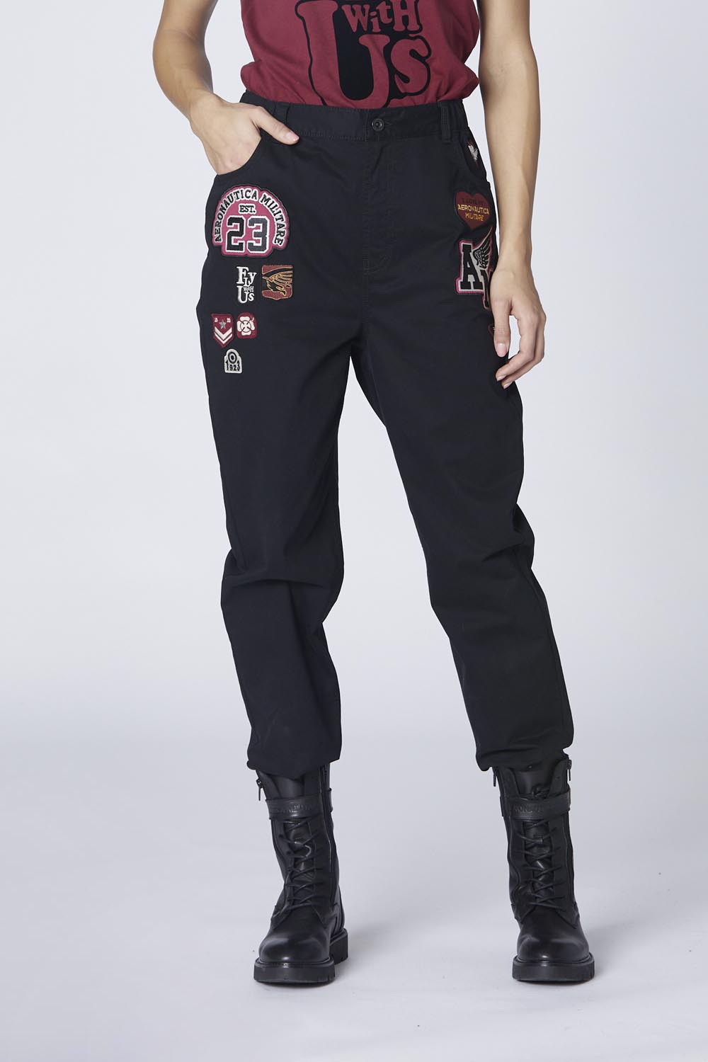 Tyto dámské kalhoty s pěti kapsami vyrobené z elastického bavlněného gabardénu jsou ideální pro ty, kdo se rádi odvažují. Oděv vyniká četnými nášivkami, které mu dodávají nádech osobitosti a odvahy. Tyto kalhoty kombinují pohodlí a styl, nabízejí ideální střih a jedinečný vzhled, ideální pro vyjádření individuality s odvahou a originalitou.