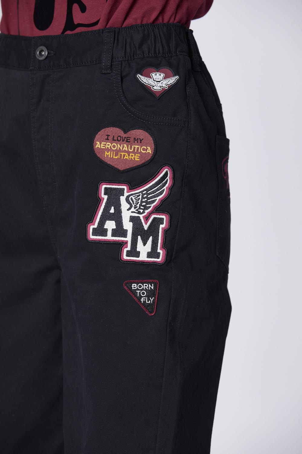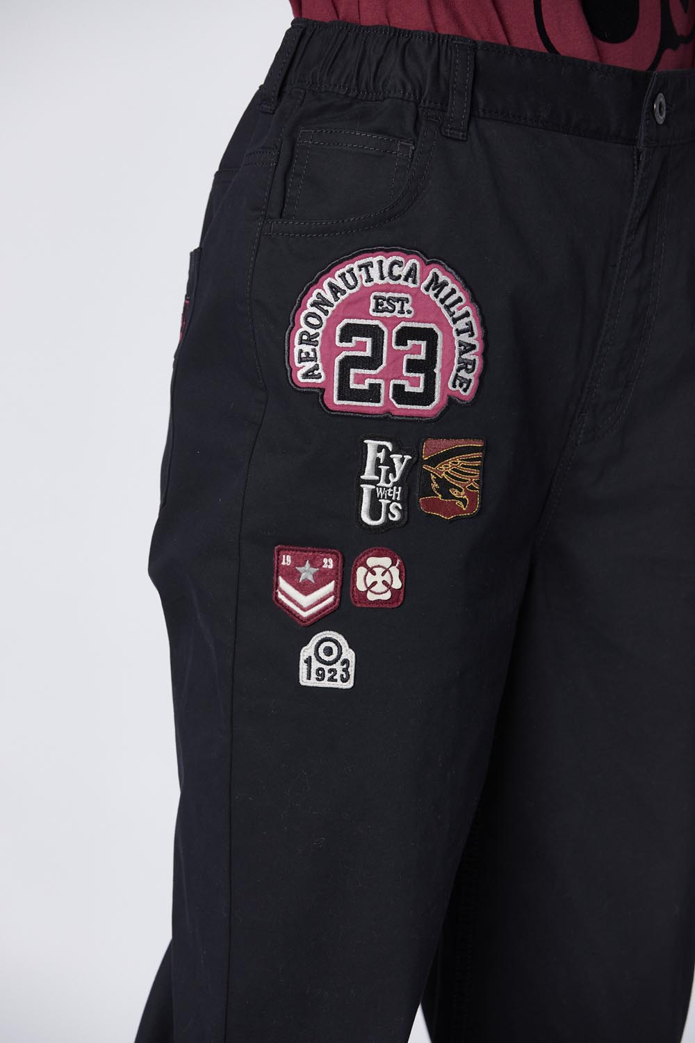Nášivky a výšivky na předních a zadních kapsách