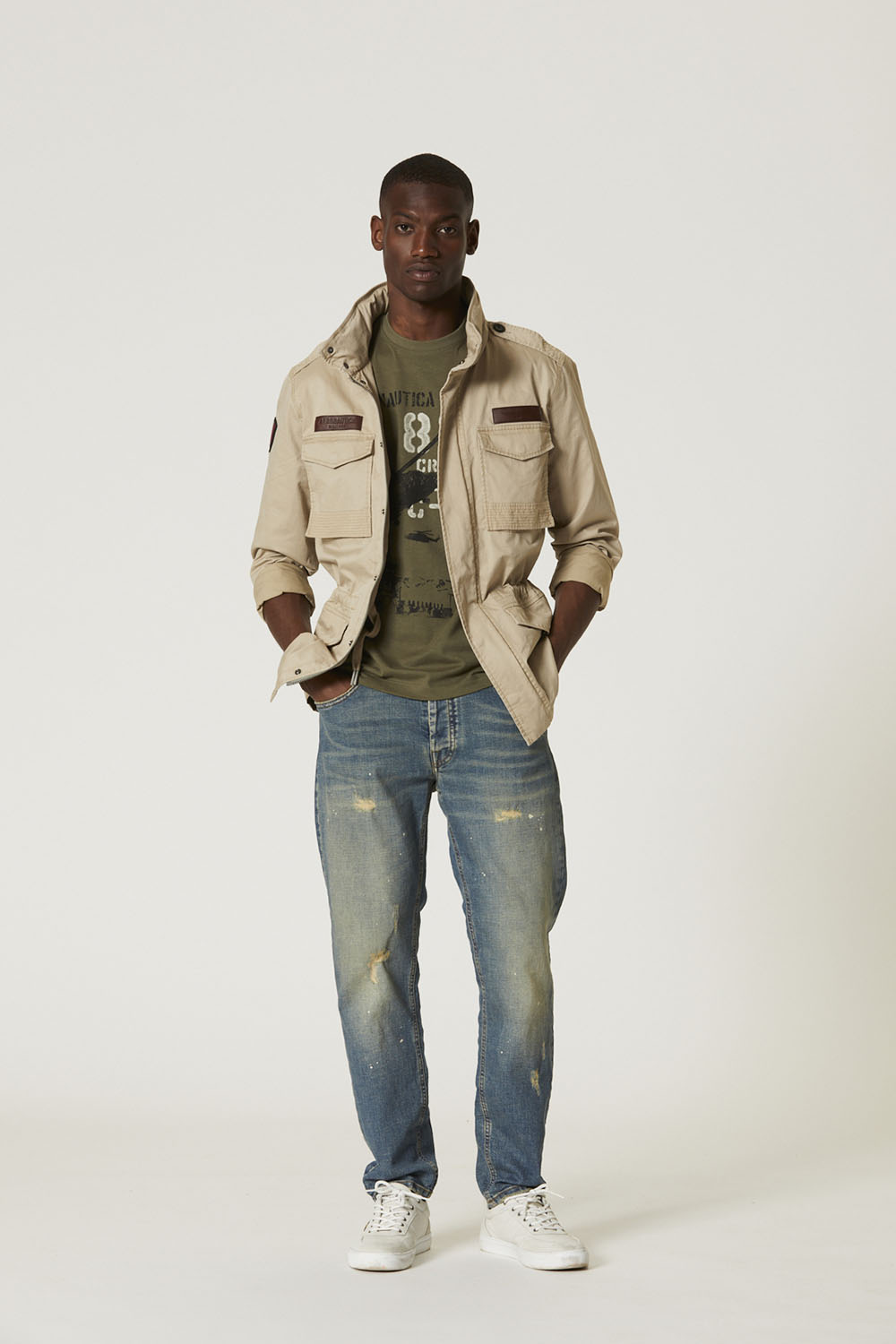 Tyto džíny, které jsou součástí kolekce kapslí Frecce Tricolori, jsou obohaceny o okouzlující nášivky připomínající archivní grafiku, kterou používá nejznámější světový akrobatický tým. Tento oděv vyrobený z předsráženého denimu, již vypraného, aby si časem držel svůj tvar, se vyznačuje jedinečnými praními se speciálními nástřiky, které mu dodávají vintage a zároveň originální vzhled.