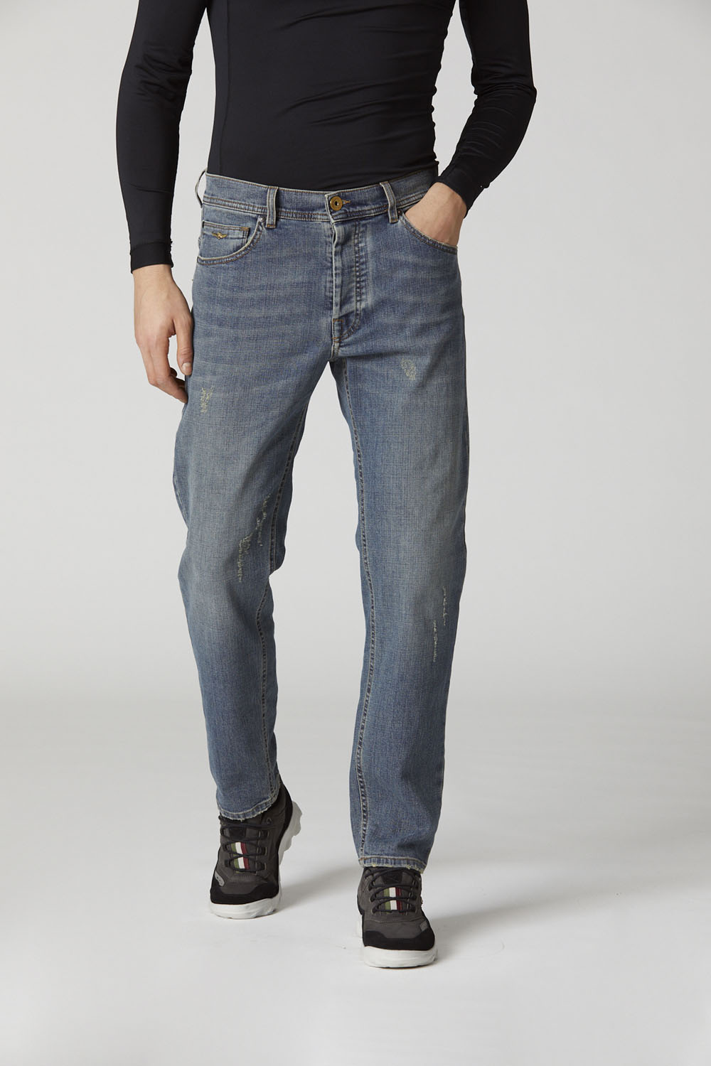 Tyto džíny s pěti kapsami jsou navrženy jedinečnou prací technikou, která jim dodává vintage vzhled a jemné mikropraskliny, které dodávají oděvu charakter.