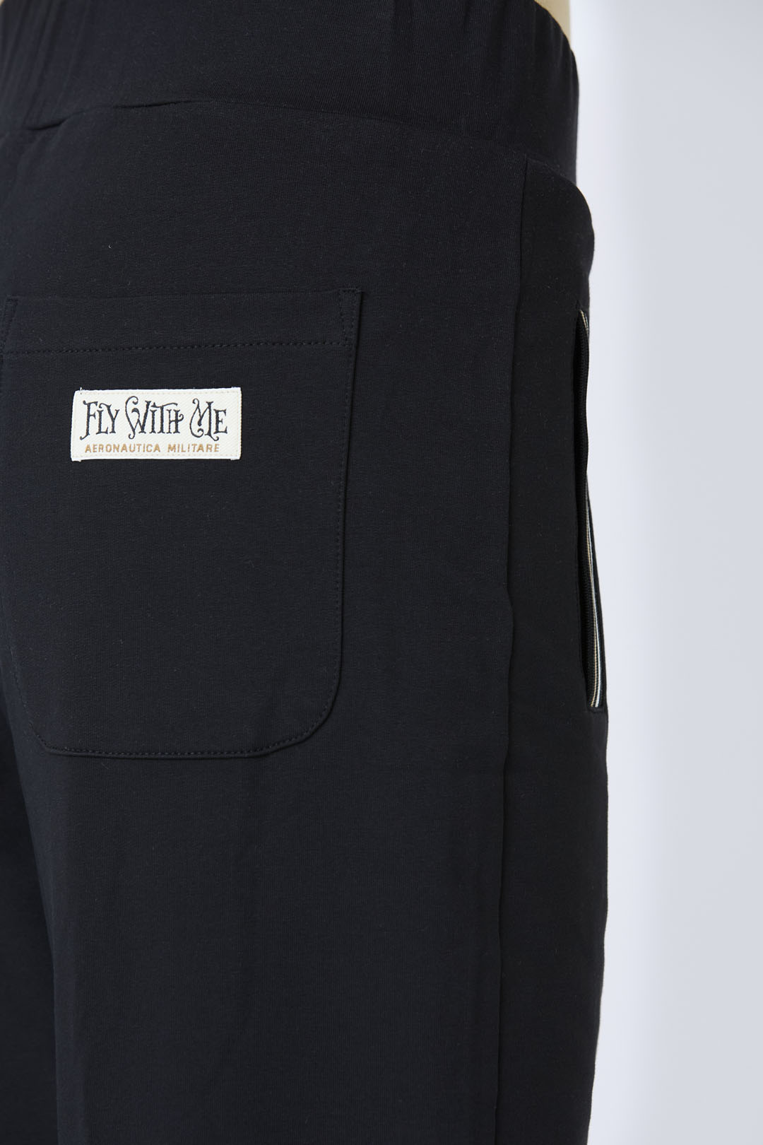Zadní kapsa s nápisem "Fly with me"