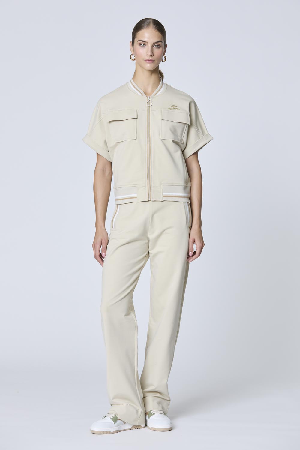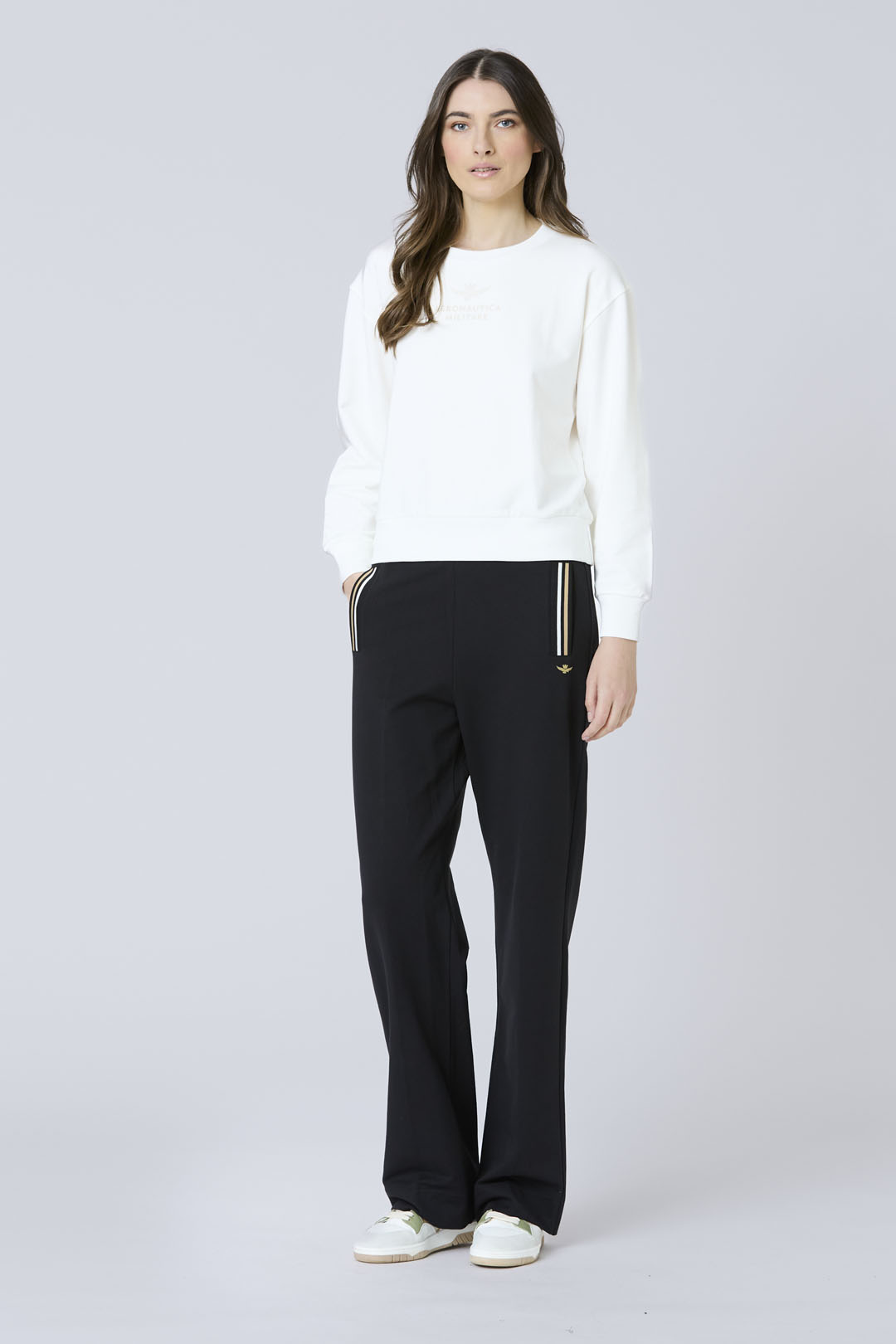 Tyto palazzo tepláky z měkkého bavlněného fleecu poskytují styl a pohodlí bez námahy, ideální pro chvíle volna i aktivní chvilky. Žebrované lemy a zlatý gelový potisk charakteristického emblému orla přinášejí elegantní a zároveň sportovní nádech. Ve spojení s odpovídající mikinou vytvářejí elegantní a všestranný vzhled, ideální pro ležérní sofistikovanost.