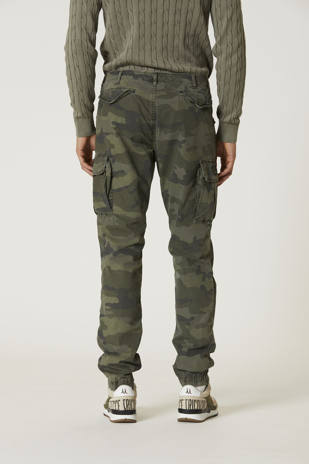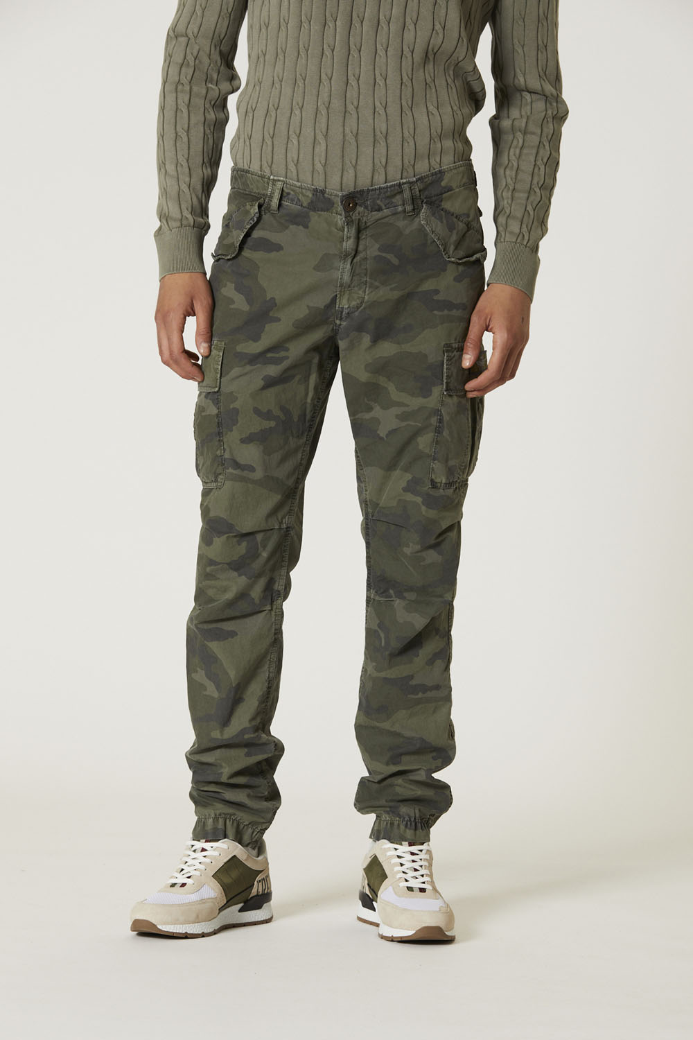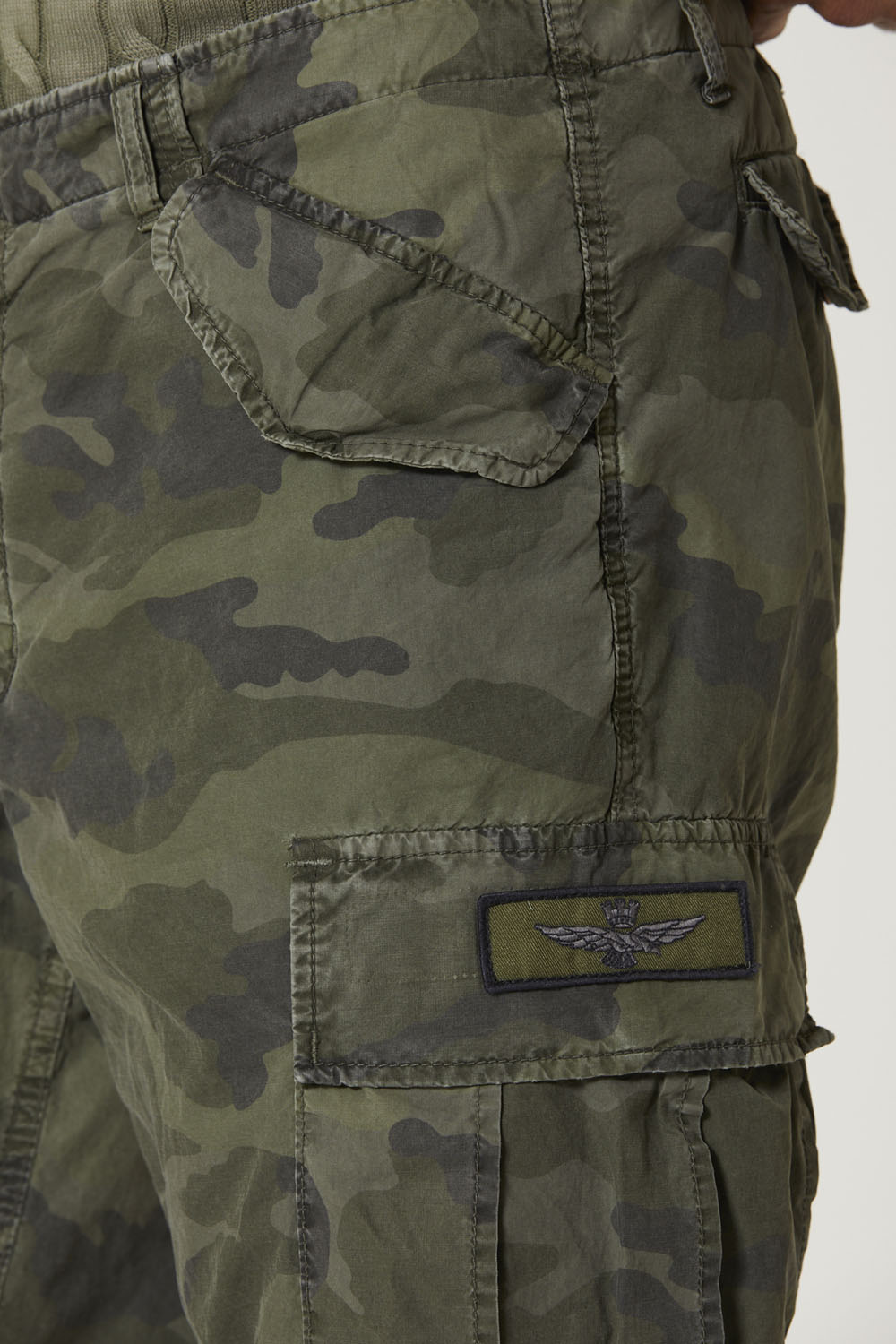 Strečové bavlněné kalhoty s velkými bočními kapsami, obohacené o naše logo a charakteristického orla s věžičkou. Výrazný celoplošný potisk s maskáčovým vzorem dělá tento oděv nezapomenutelným.