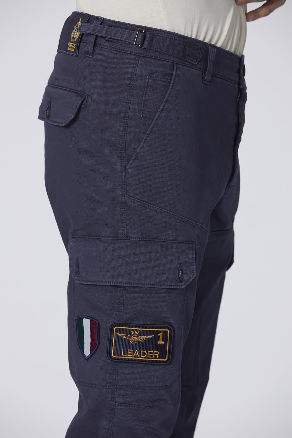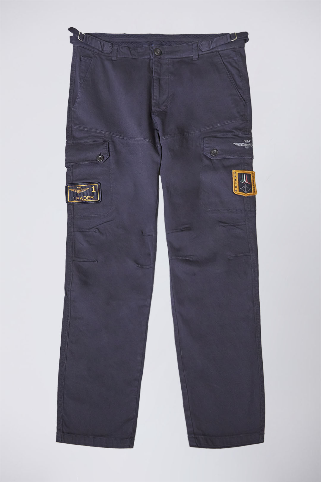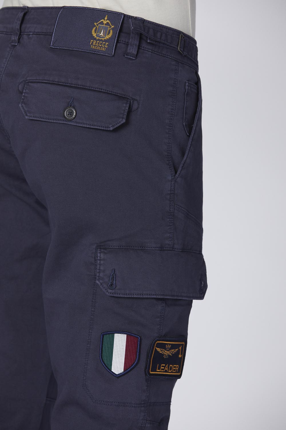 - Boční cargo kapsy s nášivkami Frecce Tricolori, Leader 1 a erbem