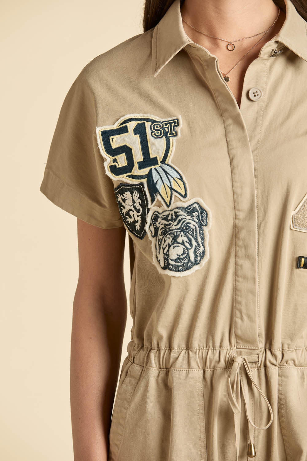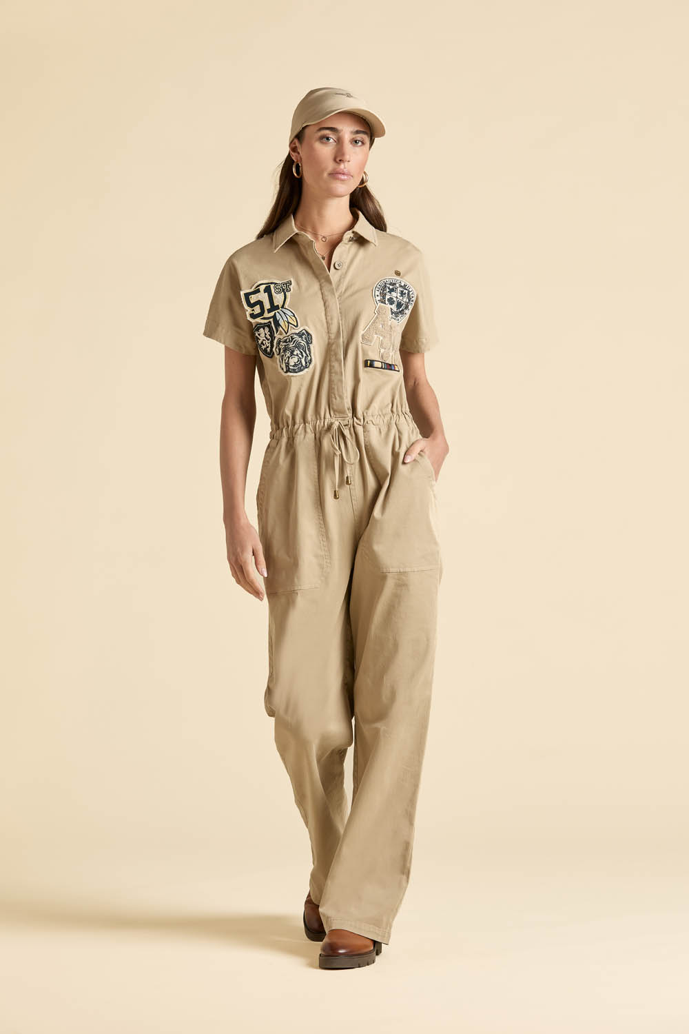 Inspirován utility estetikou a tradicí Aeronautica Militare. Tento dámský overal z lehké strečové gabardény s úpravou tinto capo vyniká autentickým vzhledem a výraznou osobností inspirovanou světem letectví.