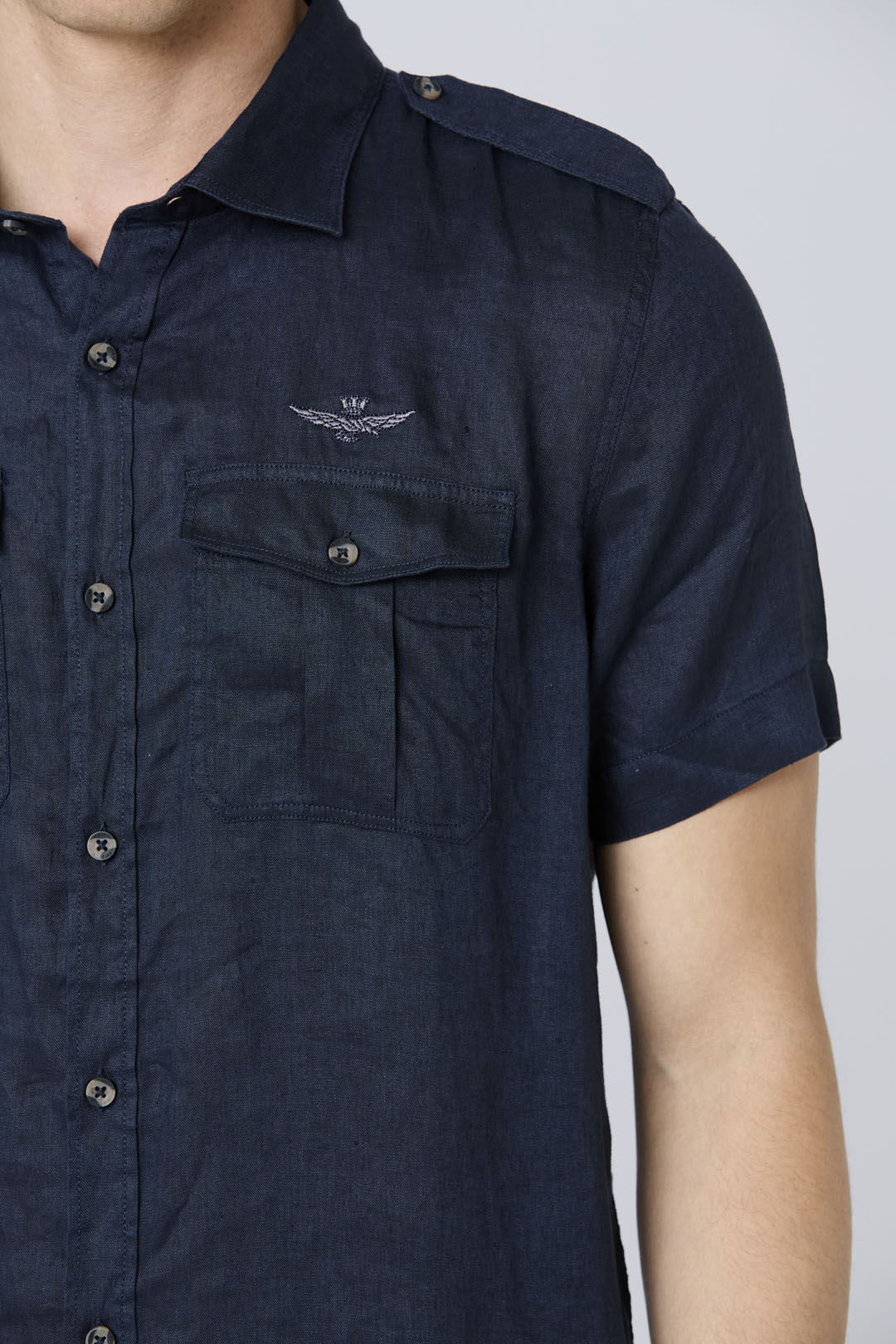 Tato čistě lněná košile kombinuje přirozené pohodlí a lehkou prodyšnost a inspiruje se vojenským stylem. Vyznačuje se dvěma funkčními náprsními kapsami a ramenními nárameníky a dodá vašemu šatníku užitečnost i charakter. Je ideální pro neformální příležitosti a každému vzhledu dodá nádech drsné sofistikovanosti.