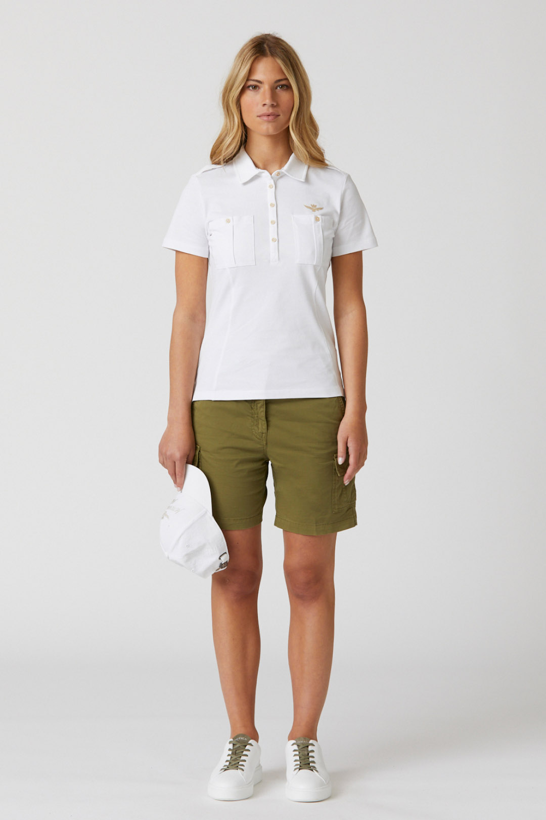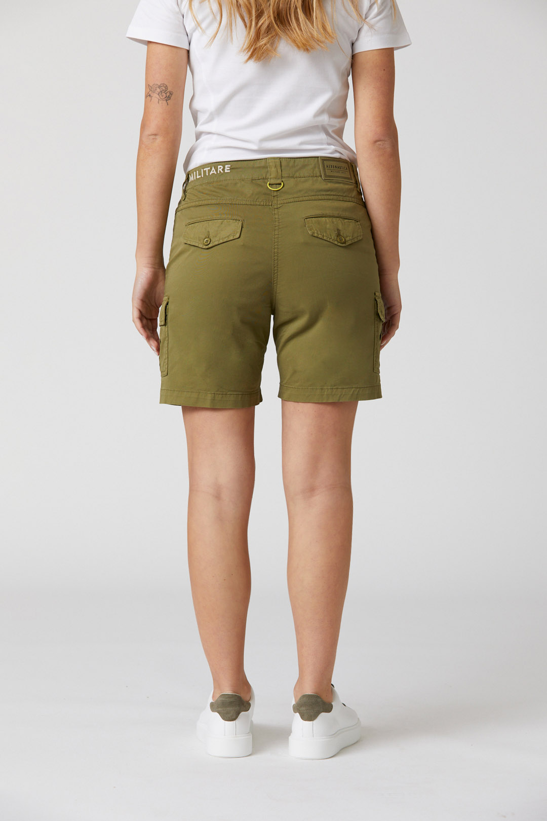 Tyto vojensky inspirované strečové bermudy s minimalistickým a stále zeleným designem jsou perfektním oděvem na aperitiv nebo večer s přáteli během letní sezóny.