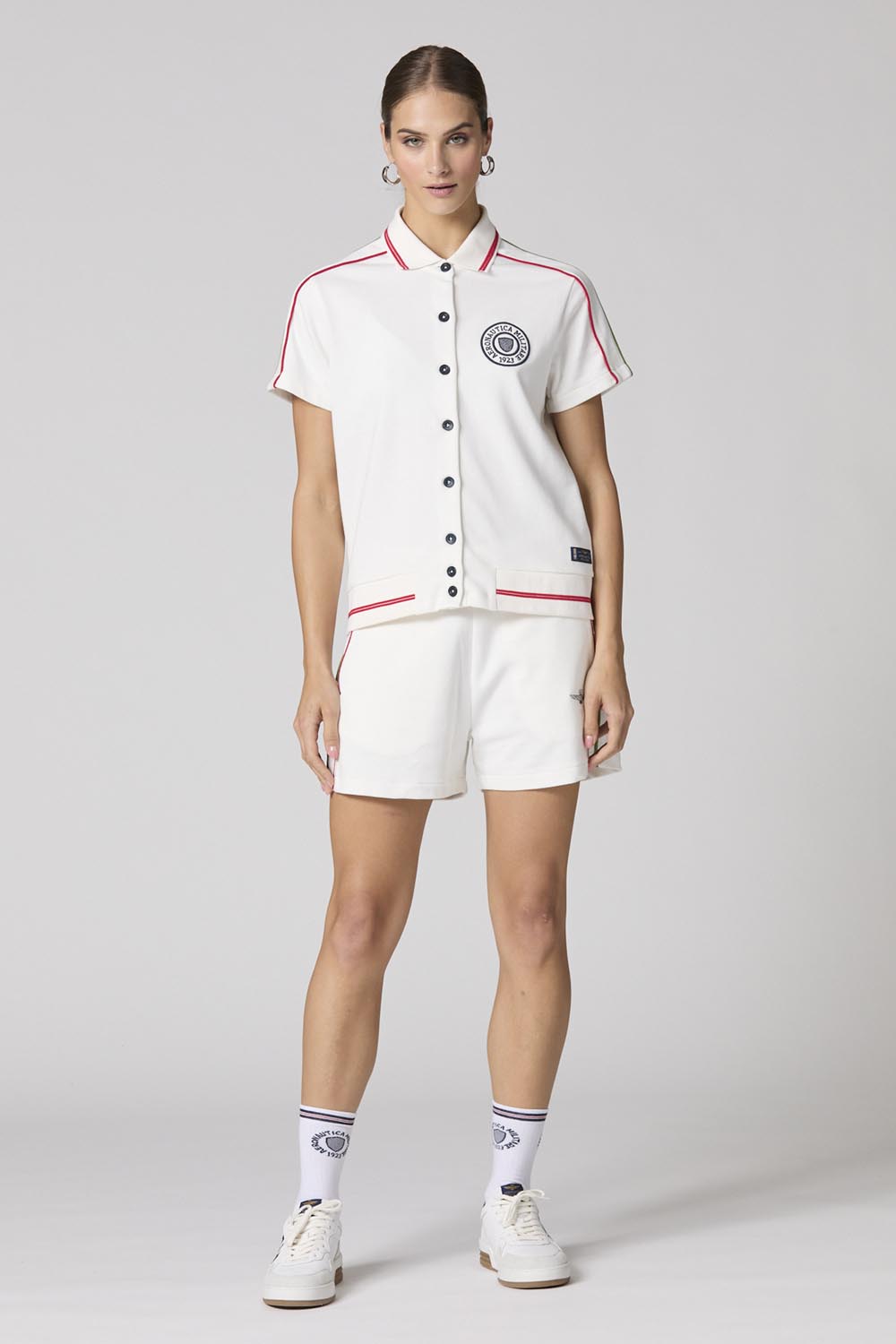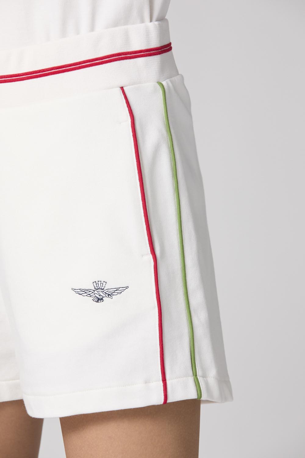 Dámské sportovní šortky, které povyšují jednoduchý design s výraznými detaily, jako je boční paspulka. Tyto šortky vyrobené z měkkého bavlněného fleecu poskytují vynikající pohodlí a uvolněný střih, ideální pro fyzické aktivity a volný čas. Ideální pro ty, kteří hledají sportovní vzhled s nádechem kultivovanosti a přikloněním se k italské tradici.