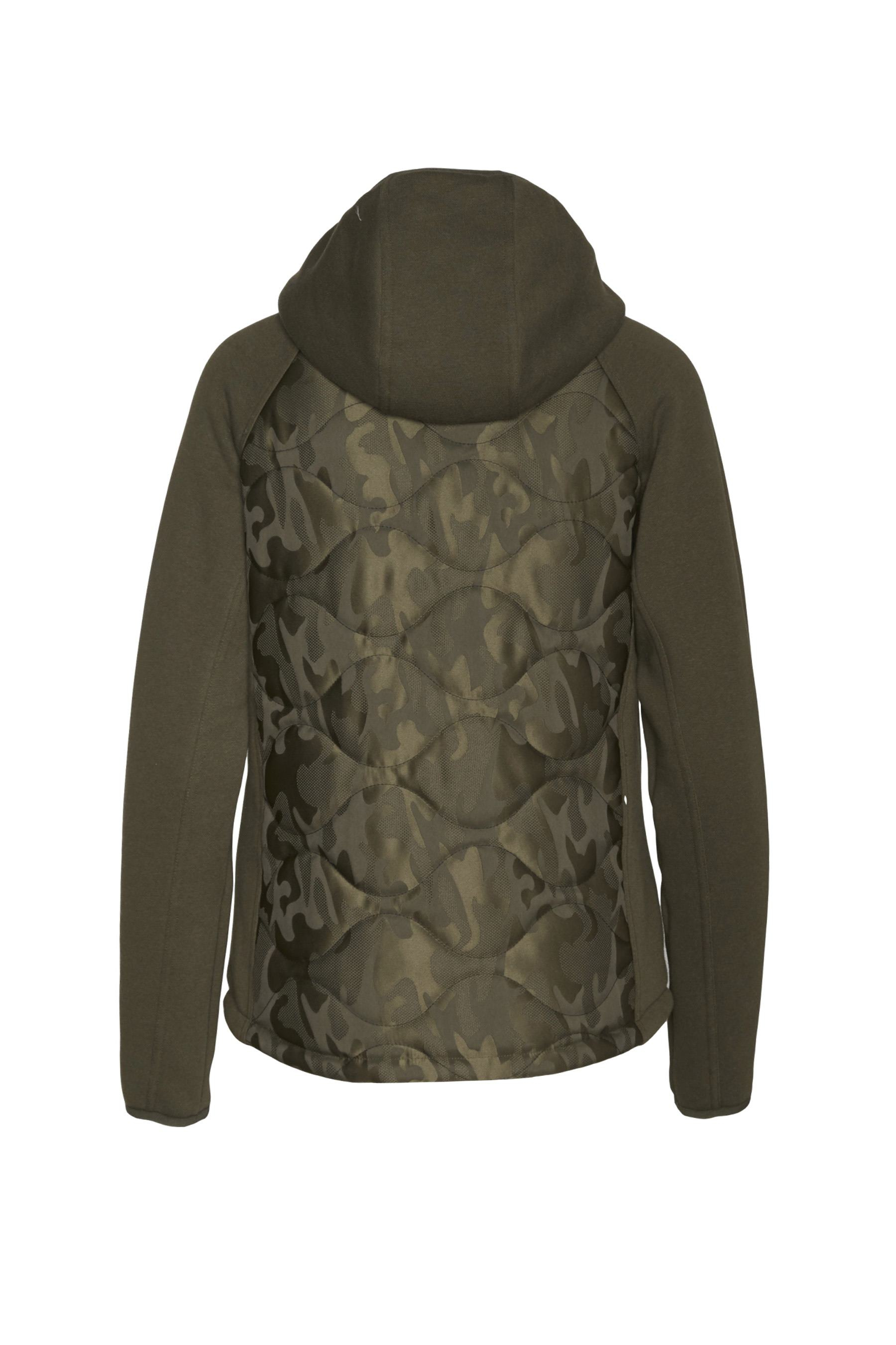 Prošívané maskáčové vložky vynikají na této celorozepínací fleecové bundě, která je ideální pro sportovní, ale elegantní styl.