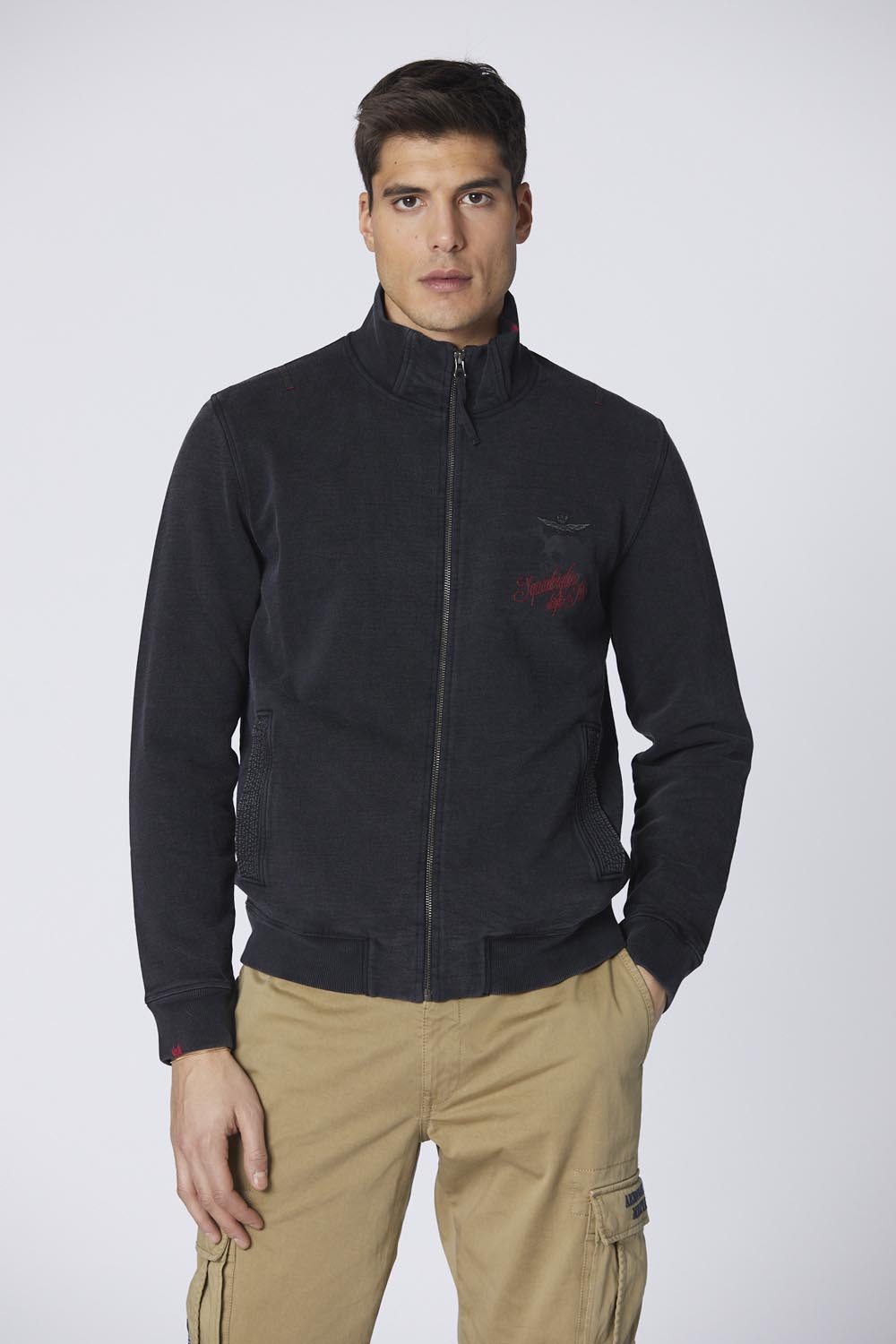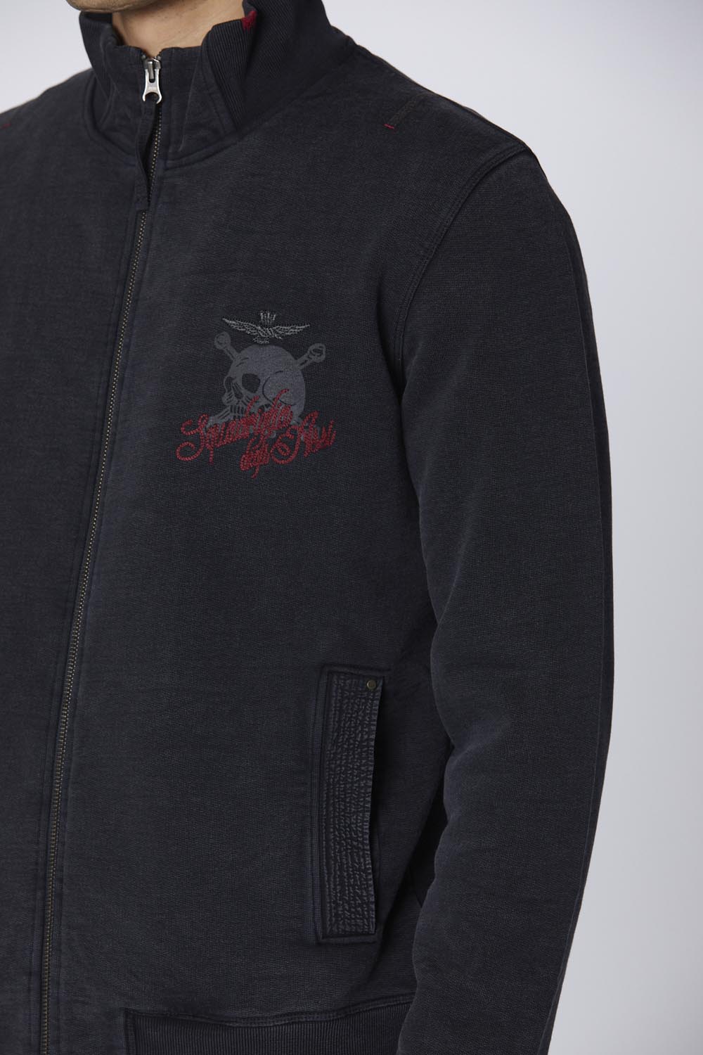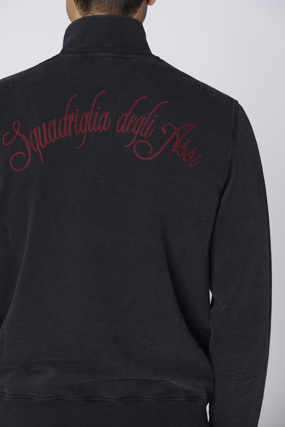 Tato bavlněná mikina, která je součástí kolekce Squadriglia degli Assi, vzdává hold 91. letce a výjimečným schopnostem, které její piloti prokázali během první světové války.Úpravy jsou provedeny technikou vyšívání Cornely, při níž se přímo na látku našívají prvky stuhy. Kamínková úprava dodává jedinečný vintage efekt, díky němuž je tento oděv výrazný a jedinečný.