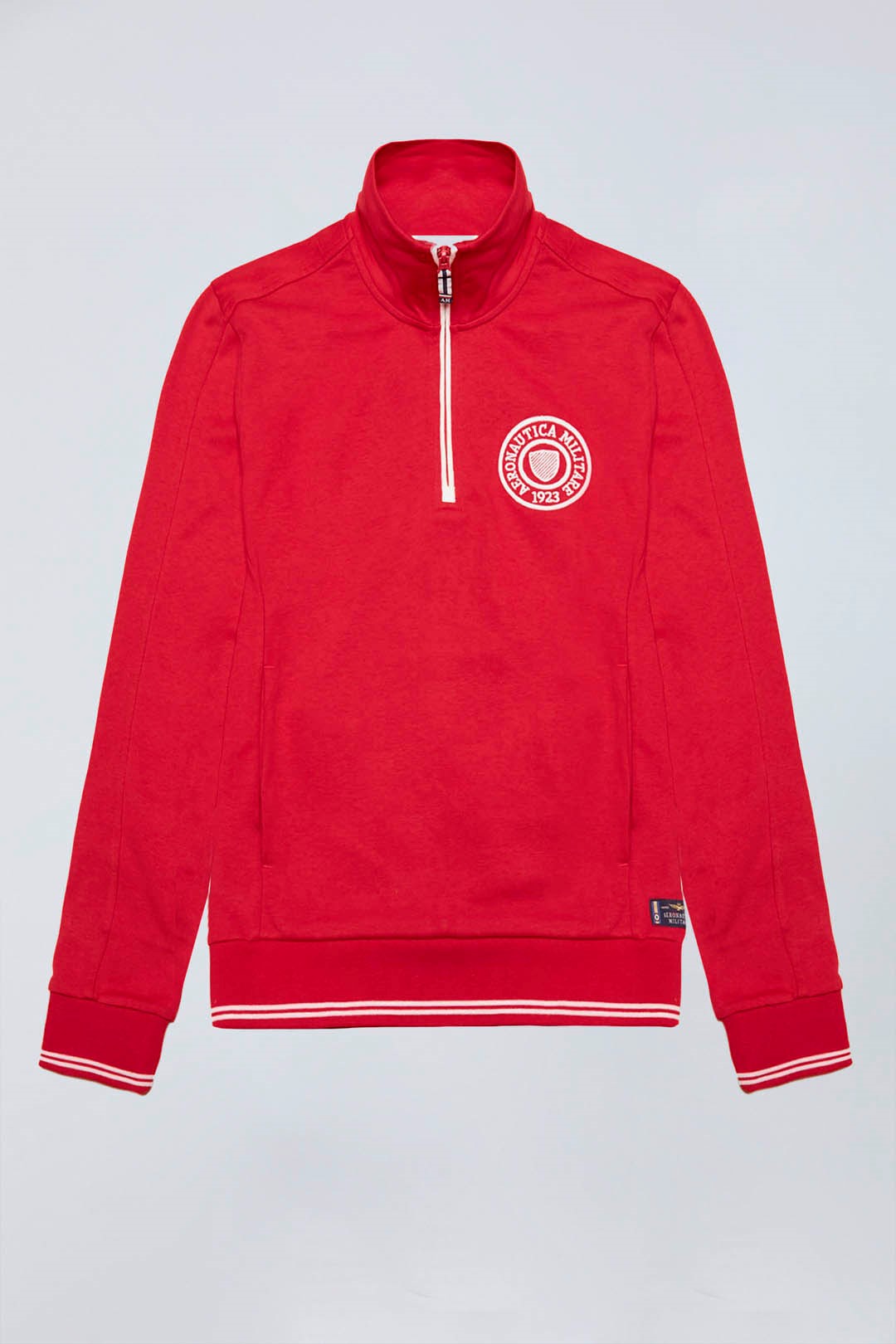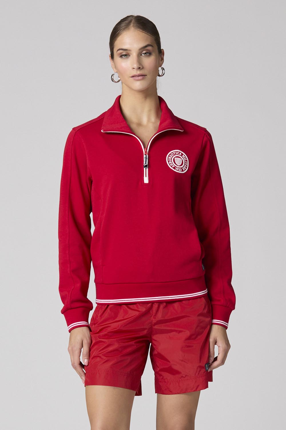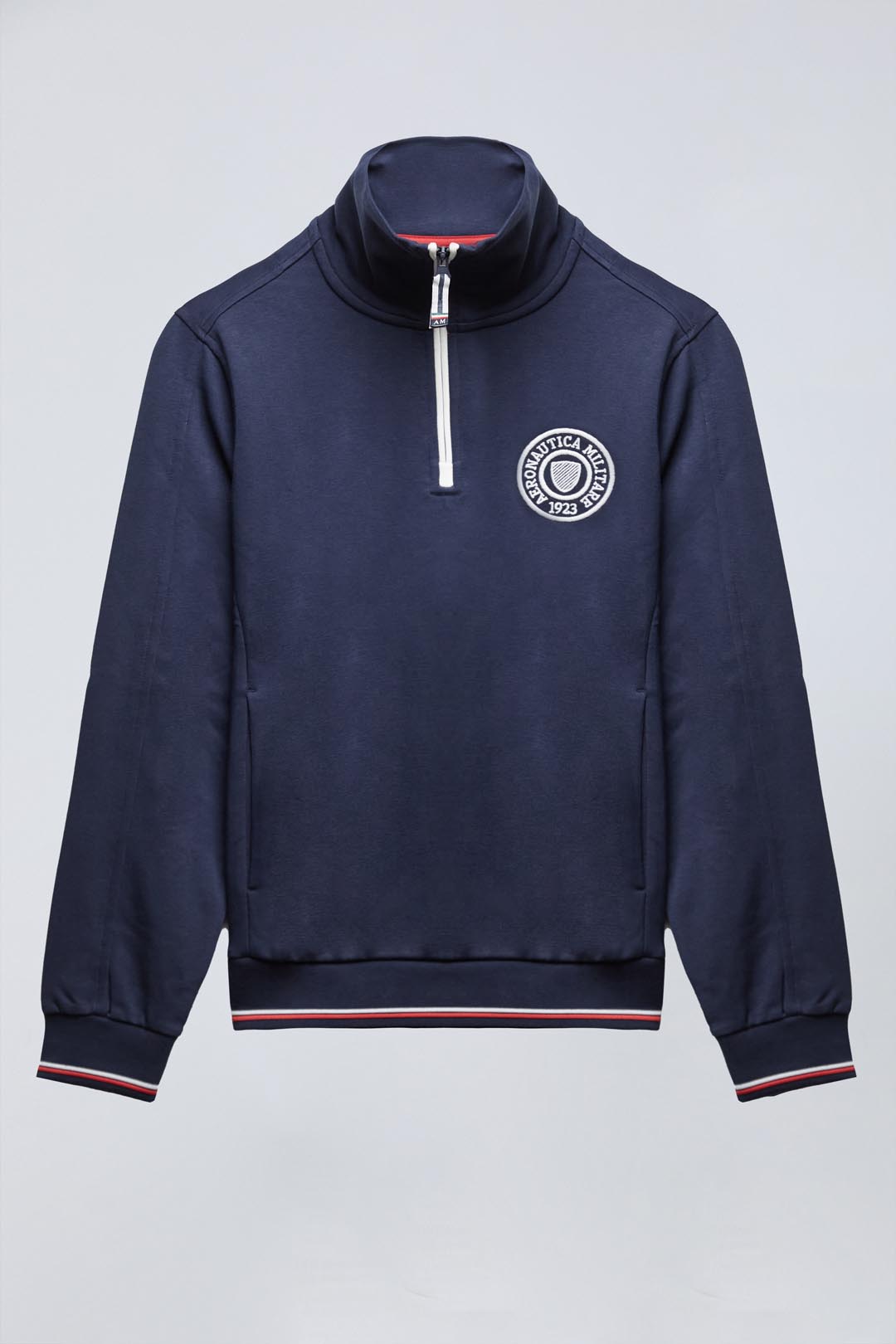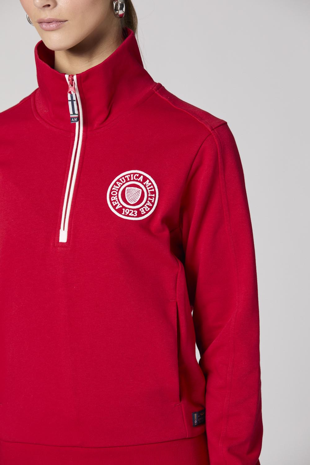 Dámská mikina z vysoce kvalitní elastické bavlny, která nabízí pohodlný střih a velkou volnost pohybu. Konstrukce s polovičním zipem umožňuje nastavitelné zapínání límce, zatímco výrazné barvy Aeronautica Militare, které se mísí s živými letními tóny, dodají každému sportovnímu outfitu svěží a originální nádech.