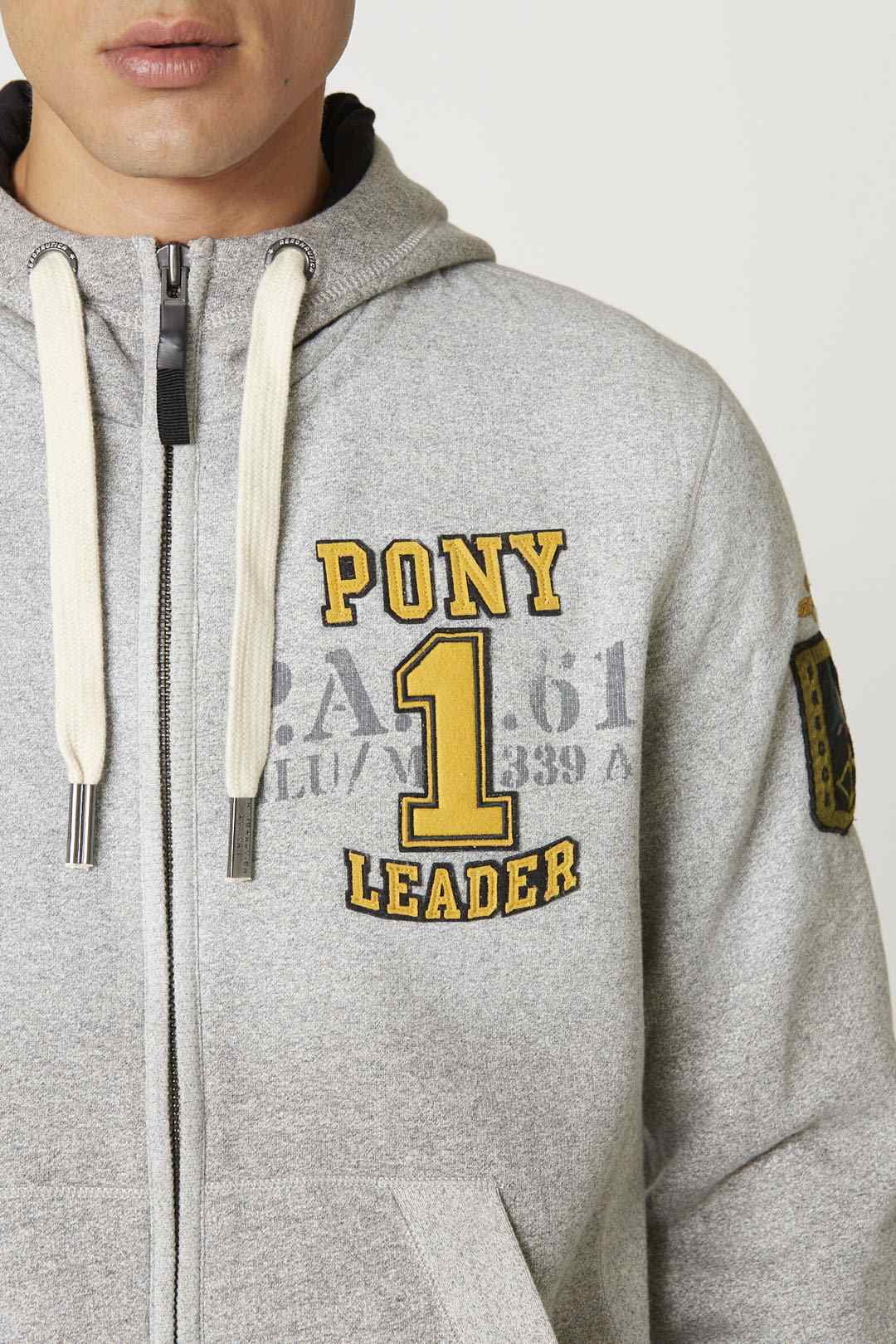 Tato bavlněná mikina volného střihu, která je součástí kapsle věnované Frecce Tricolori, která nově interpretuje archivní grafiku PAN v moderním klíči, vzdává hold Pony 1 Leader. Je vůdcem Frecce Tricolori a je zodpovědný za vedení formace během všech vzdušných kousků.
