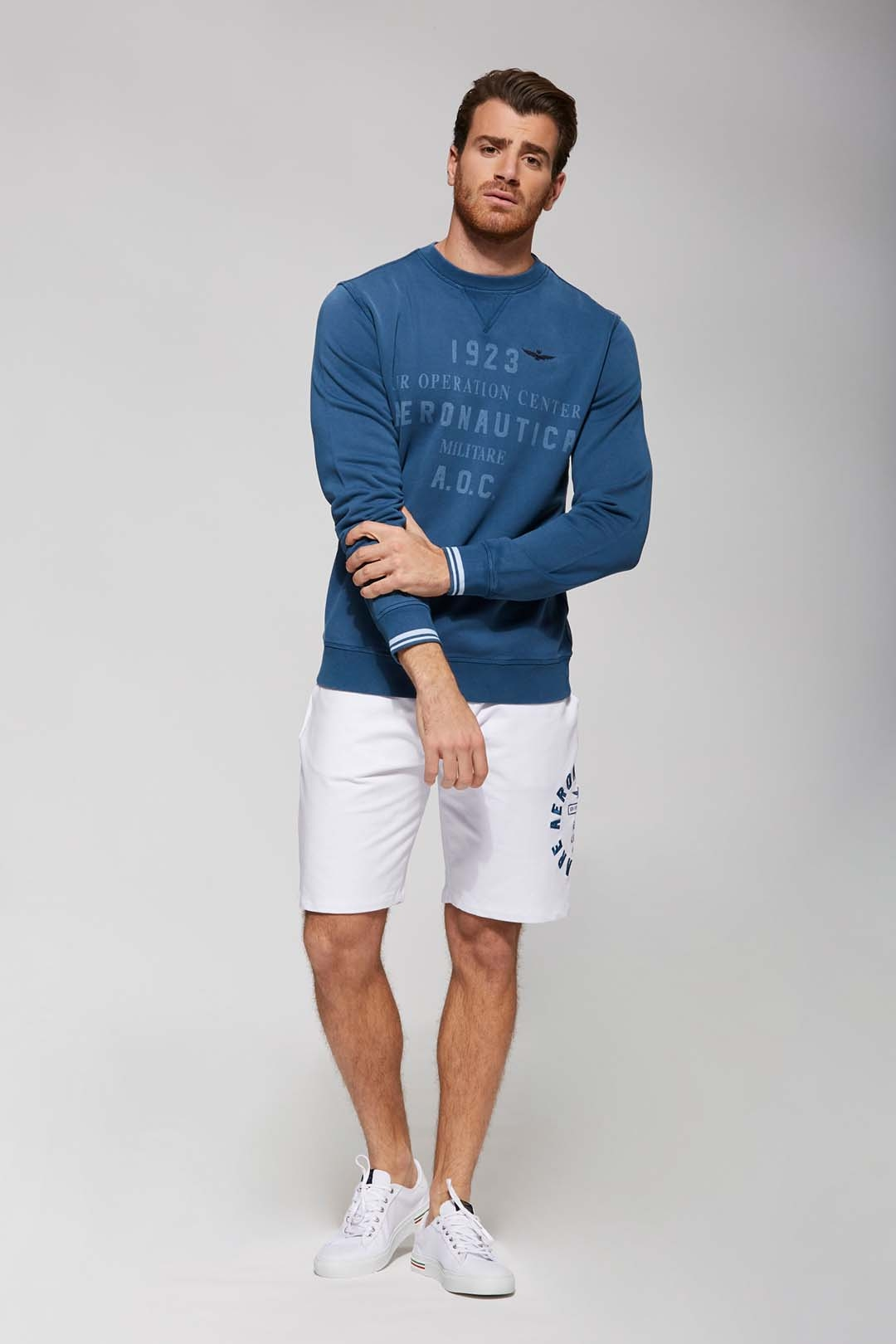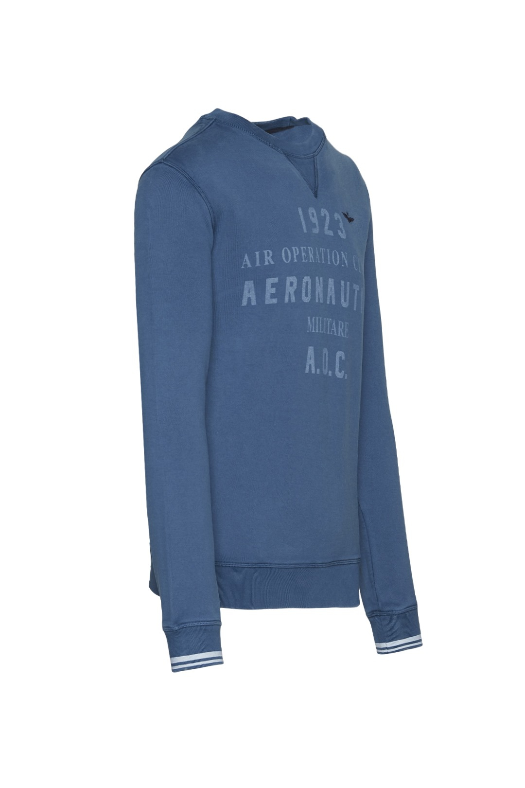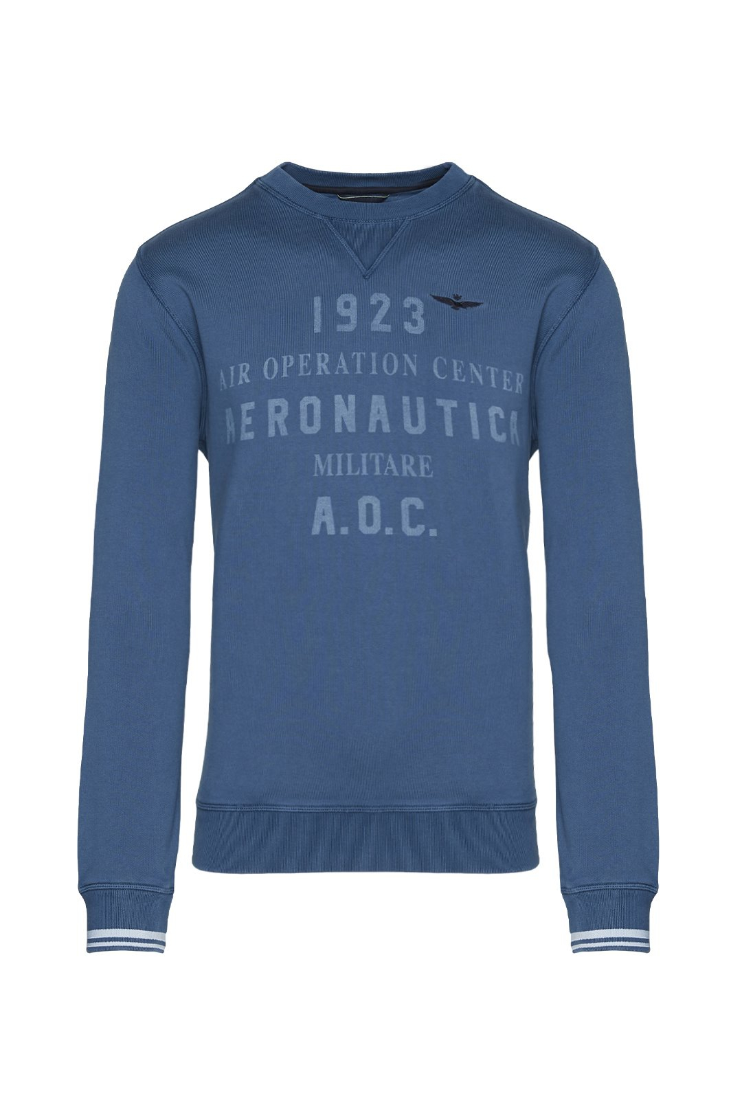 A cotton crewneck sweatshirt treated with a stonewash that gives the garment an aged look. Match it with the jeans from the Aeronautica Militare collection for a casual but striking outfit.