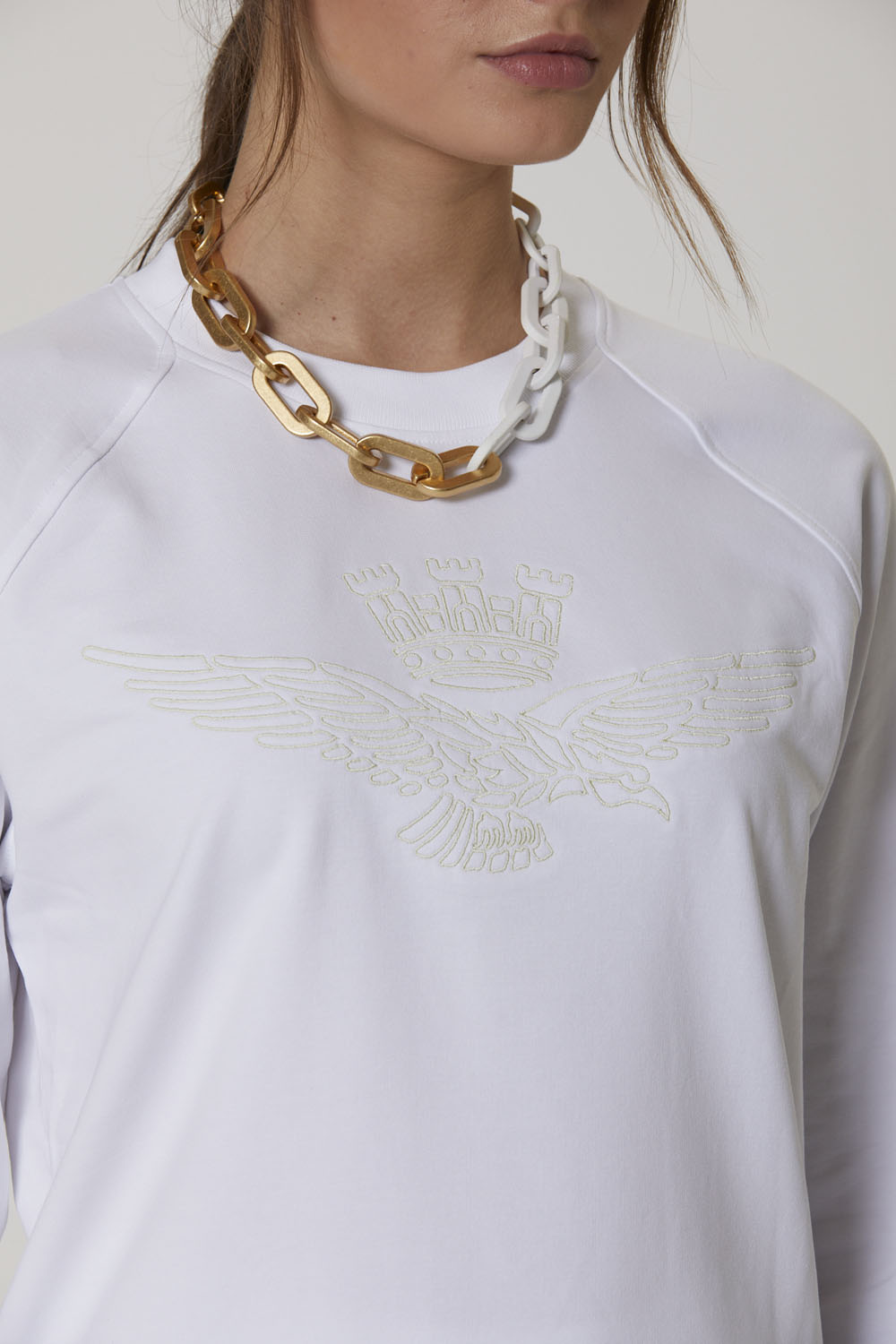 Lehká mikina vyrobená z měkké strečové bavlny. Vyznačuje se raglánovými rukávy a výšivkou charakteristické věžovitého orla, symbolu vojenských pilotů.