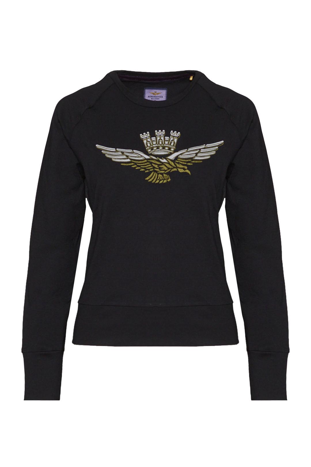 Tato mikina s výstřihem z měkké elastické viskózy je navržena jako doplněk sportovního vzhledu, zdobí ji kontrastní stuhy na bocích a na přední straně dominuje grafika s podpisem korunovaného orla.