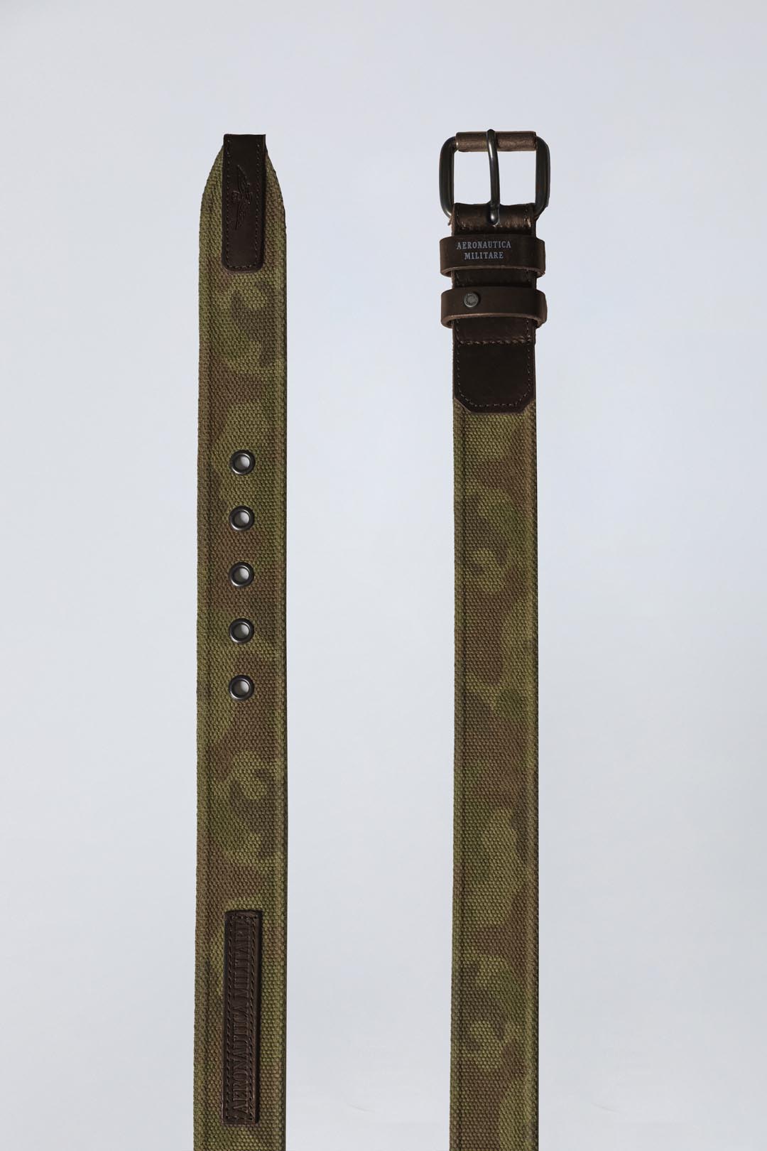 Tento pásek vyrobený v Itálii má maskáčový potisk ve vintage stylu, který působí odvážně a neotřele. Je obohacen o exkluzivní kožené detaily a výrazné rytiny a nabízí jedinečný doplněk, který dodá každému oblečení vojenský styl a nadčasový půvab.