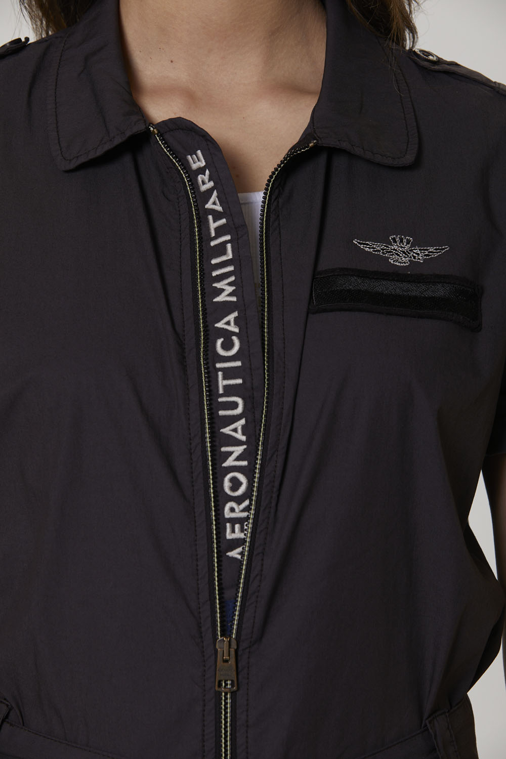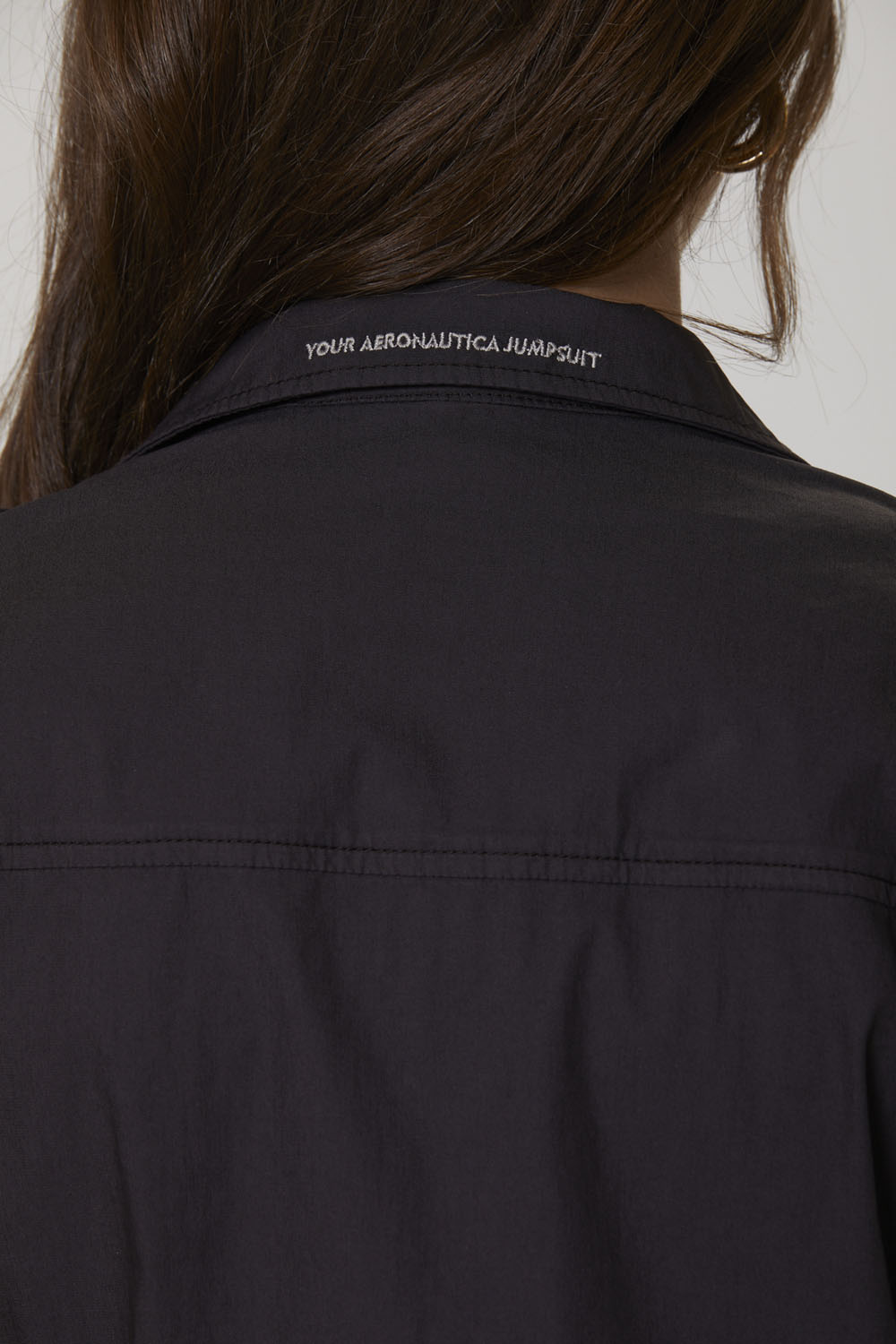 - Výšivka "Your Aeronautica jumpsuit" na zadní straně límce