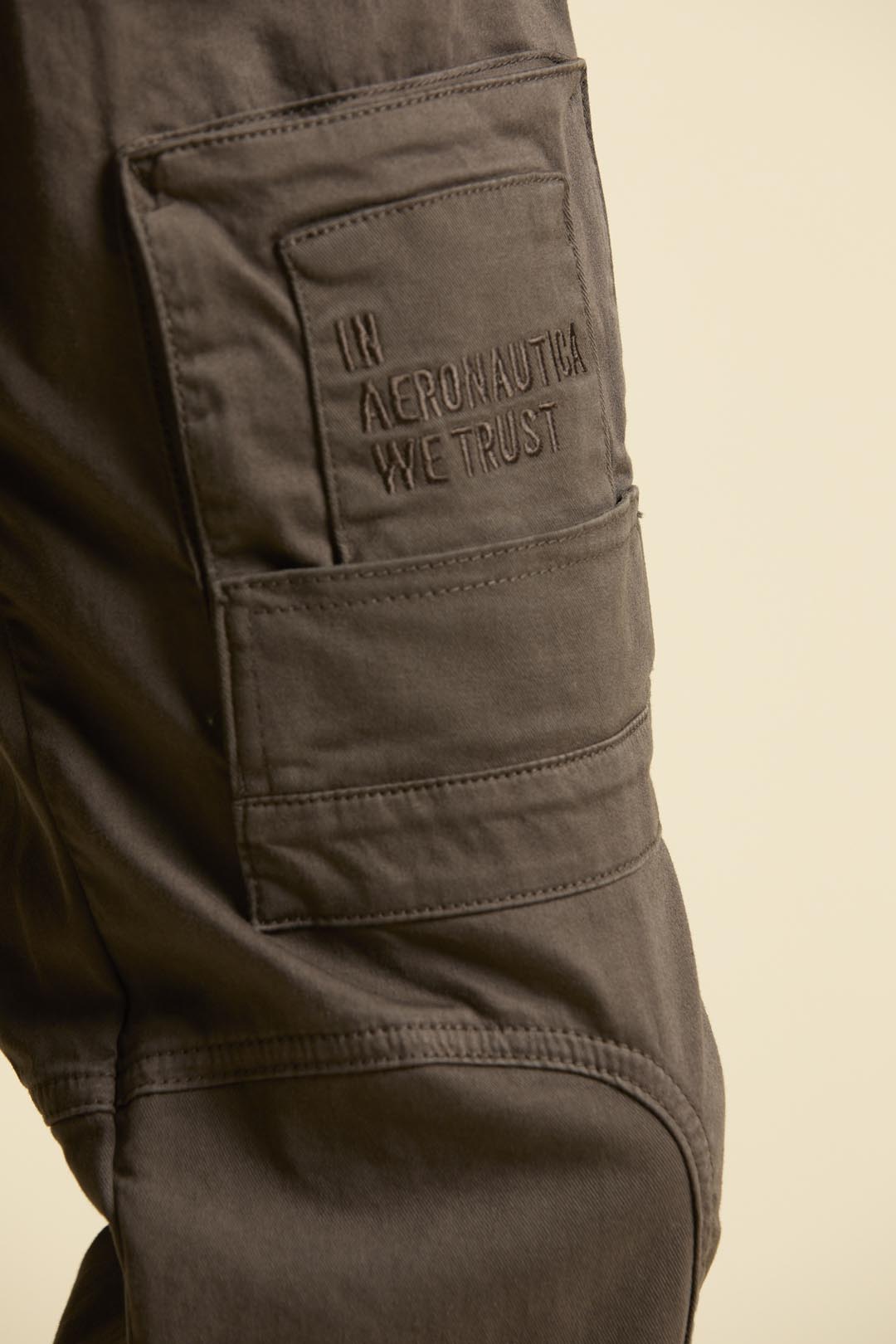 Více kapes včetně charakteristických kaps s vyšívaným nápisem „In Aeronautica We Trust“