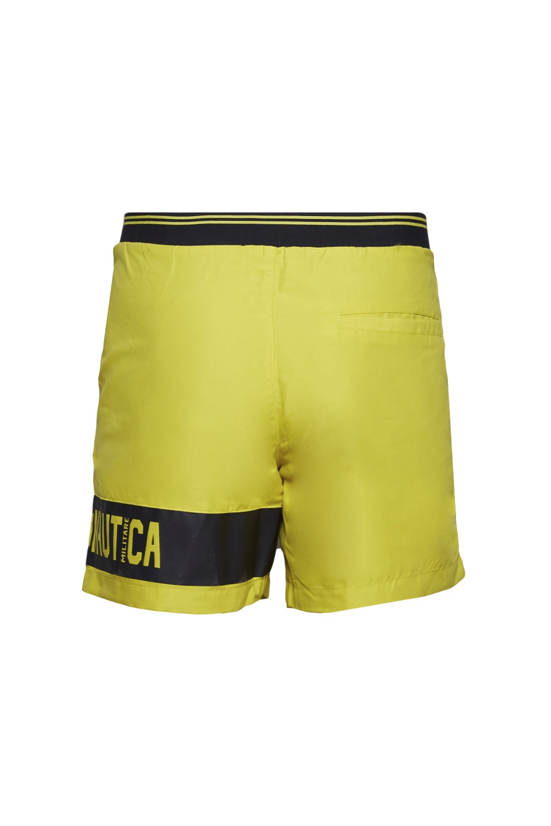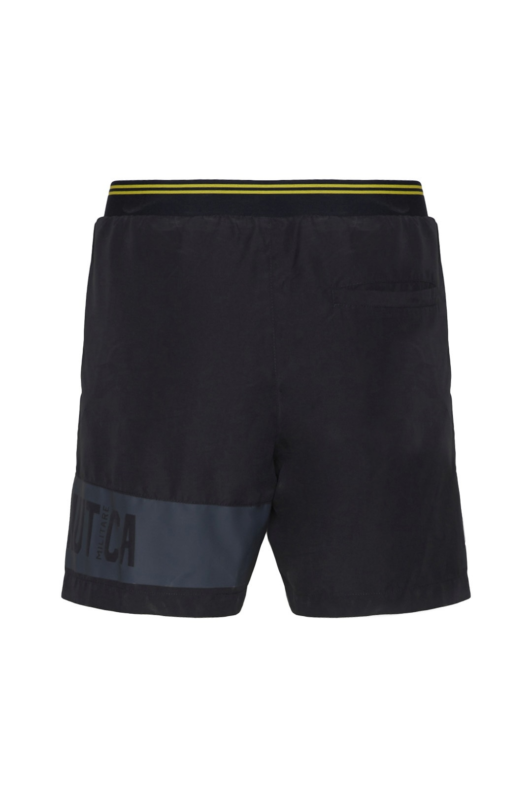 - Elasticated waist with drawstring and striped elastic ribbon on the back