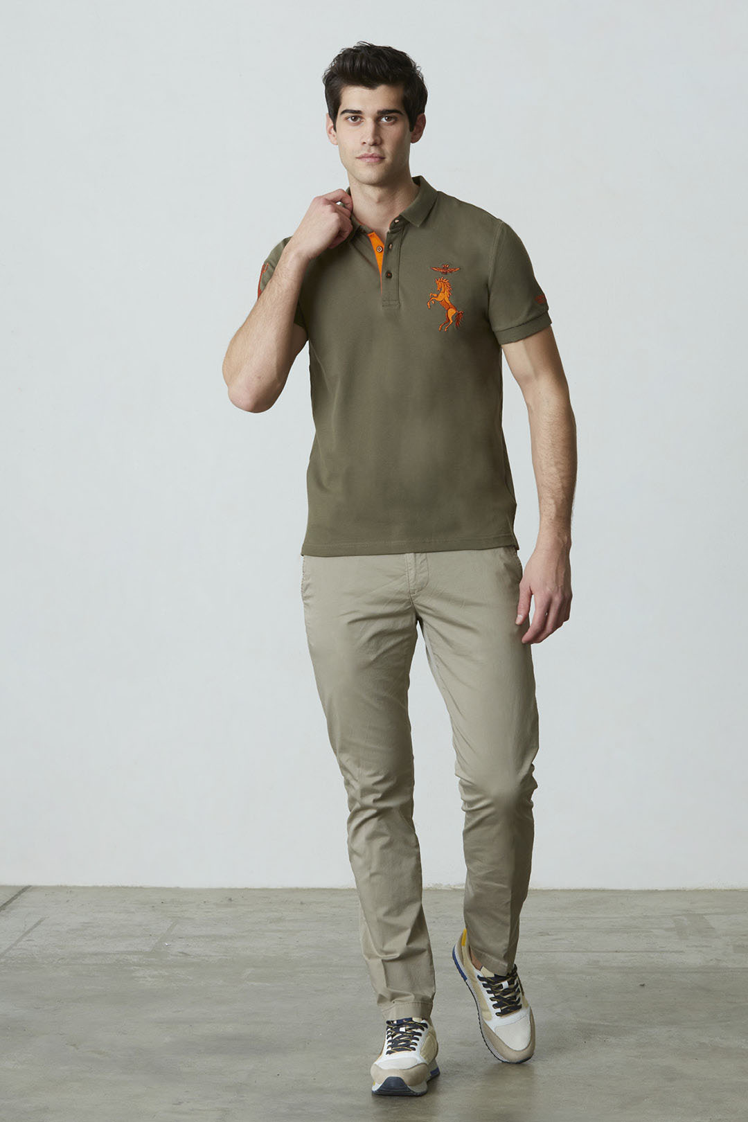 Symbol 4. křídla, vzpínající se kůň, vyniká ve hře kontrastů v této polokošili s krátkým rukávem z praktického strečového bavlněného piké.