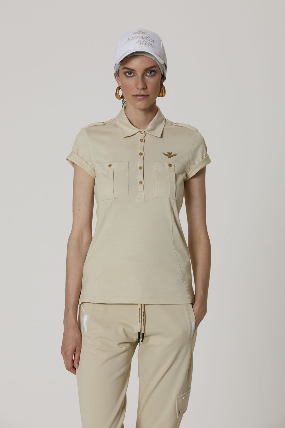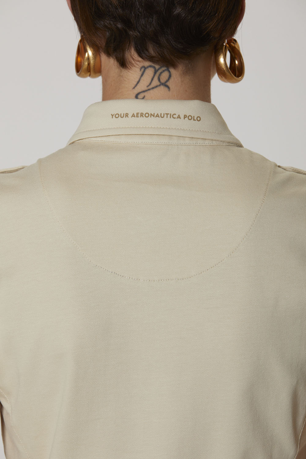 - "Vaše Aeronautica polo" vytištěné pod límcem