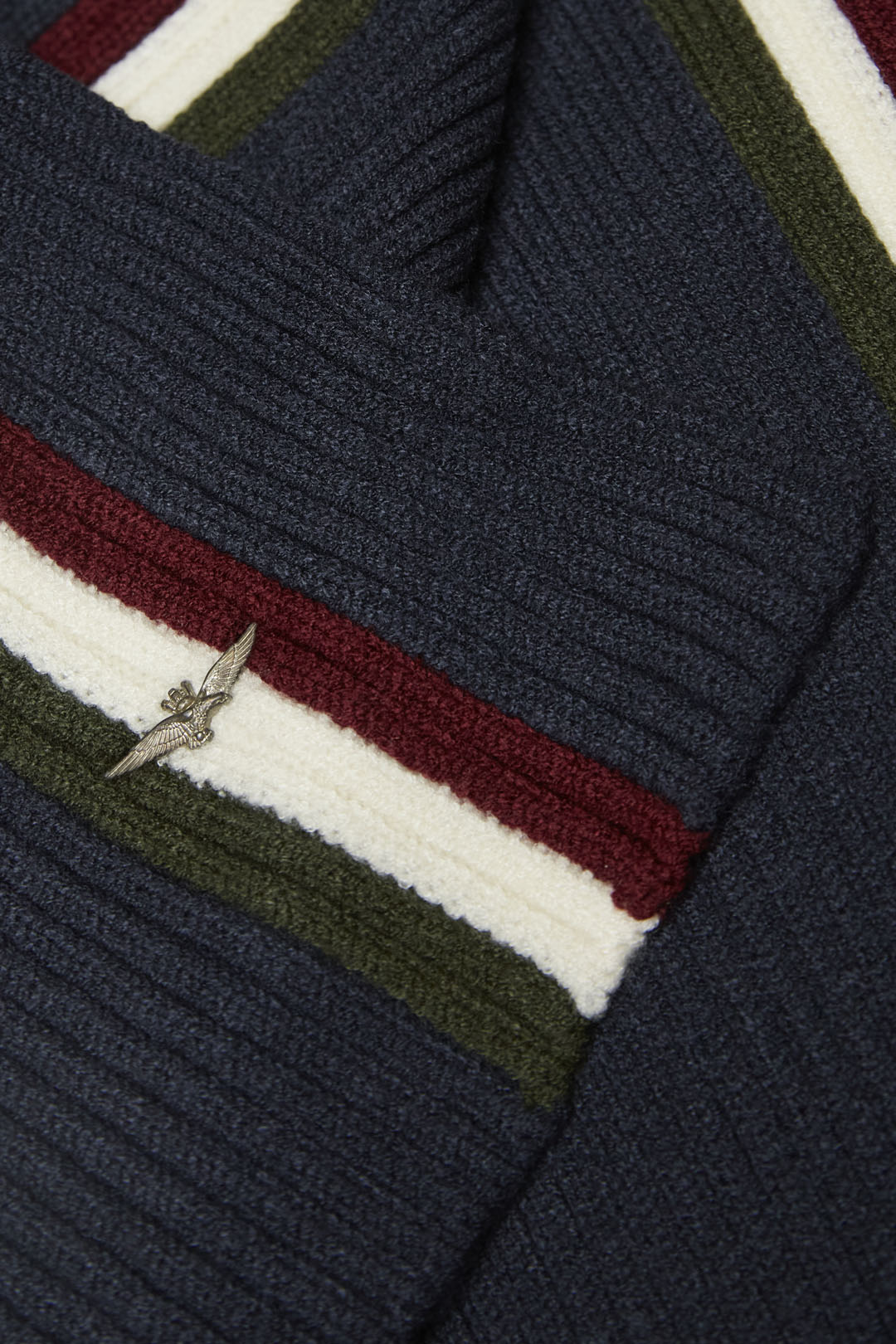 Kovový emblém orla na konci šály