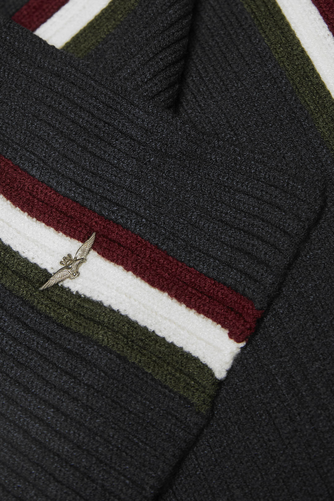 Na jednom konci šály se nachází kovový emblém orla, ikonický symbol značky, jenž podtrhuje její jedinečný styl. Díky univerzálním rozměrům a nadčasovému designu se snadno kombinuje s jakýmkoli zimním outfitem – od ležérního po elegantní.
