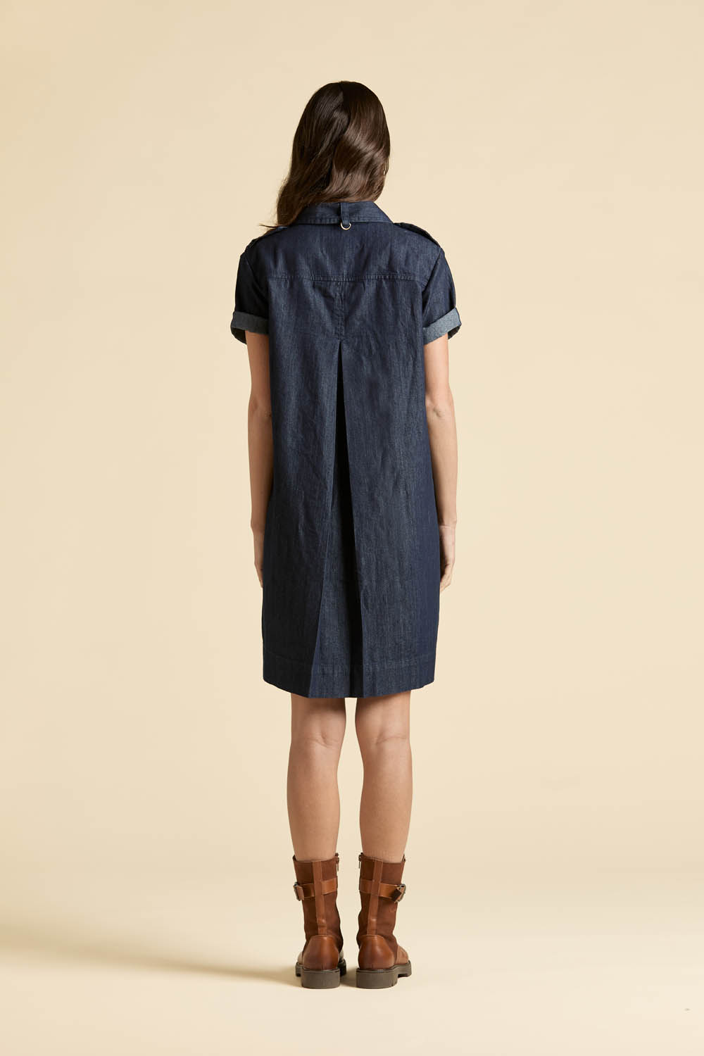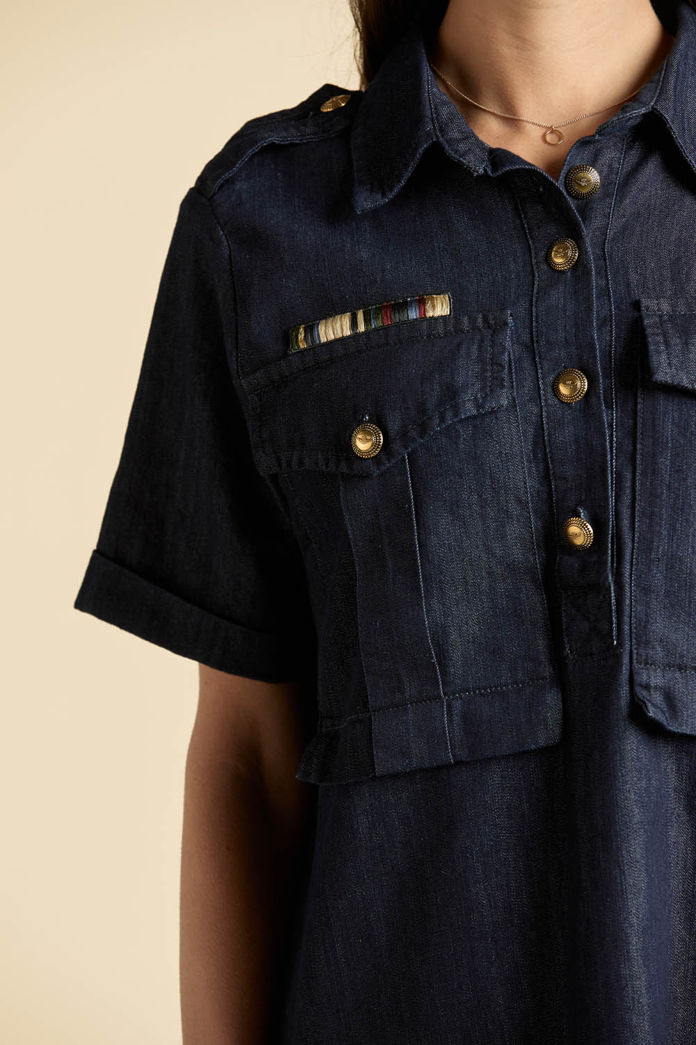 Lehkost, funkčnost a přirozená elegance v moderní interpretaci utility stylu. Tyto dámské šaty z lehkého bavlněného chambray s rinse úpravou přinášejí vyvážené spojení rafinovanosti a uvolněného charakteru inspirovaného světem letectví.