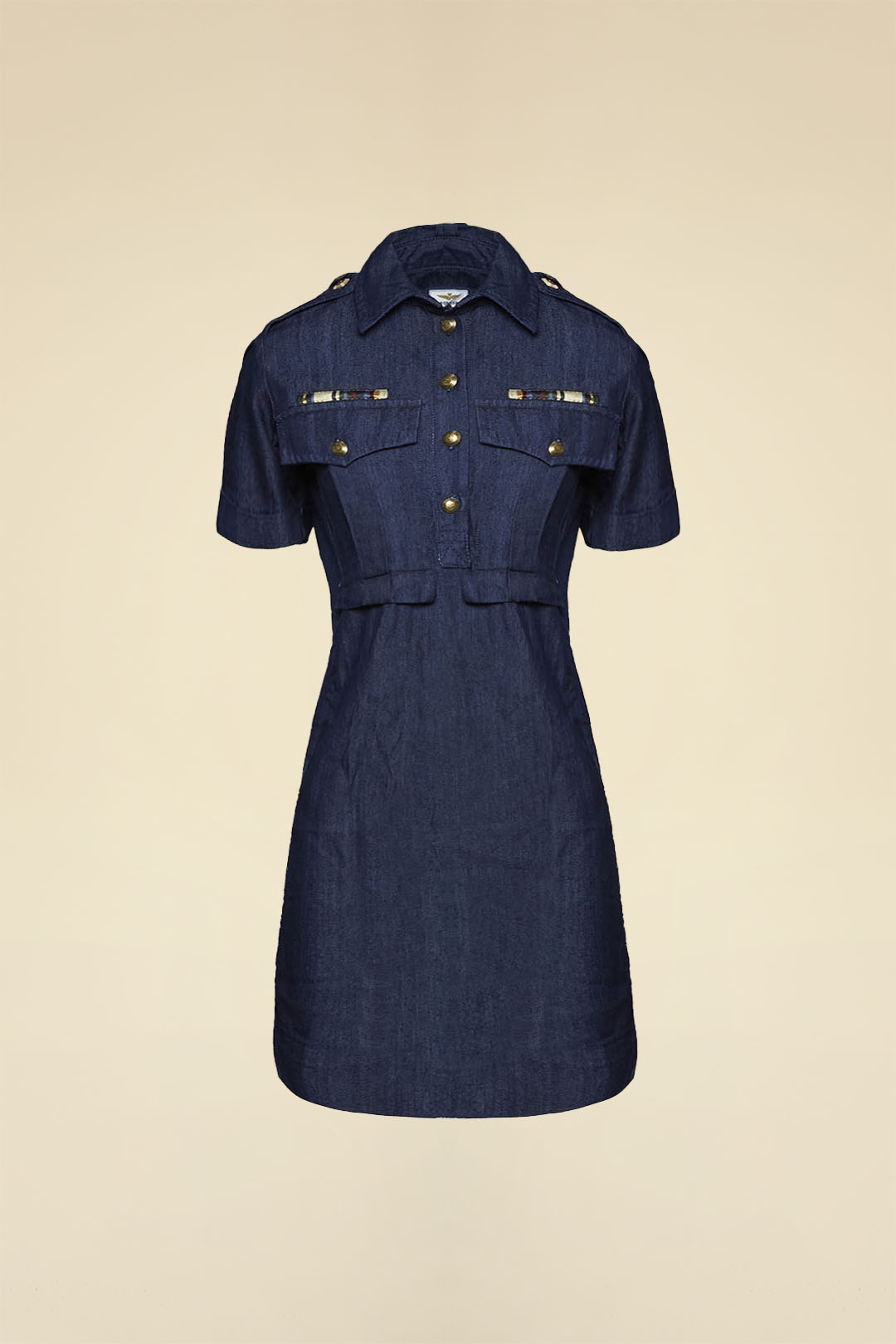Ikonické detaily — military pásky nad kapsami, scudetto s aquila turrita a stuha „Kiss Me Before Flight“ — dodávají modelu autentickou identitu Aeronautica Militare. Univerzální kousek ideální pro městské i dovolenkové outfity s lehce sofistikovaným nádechem.