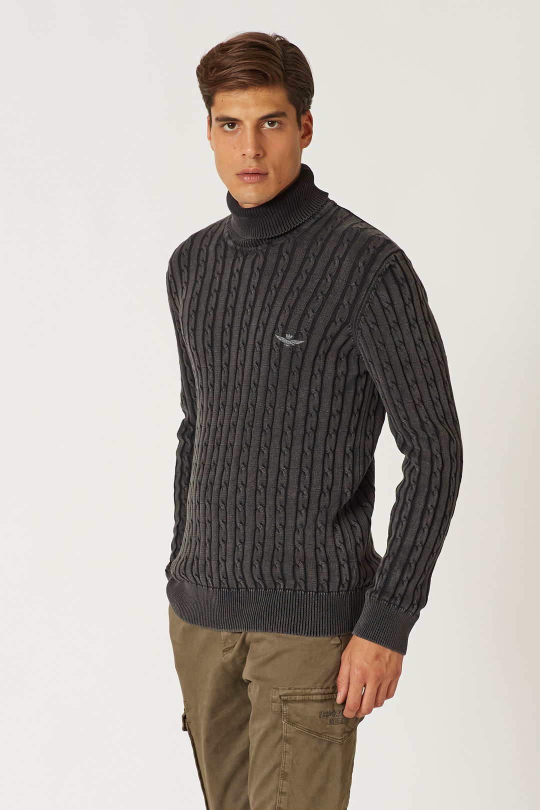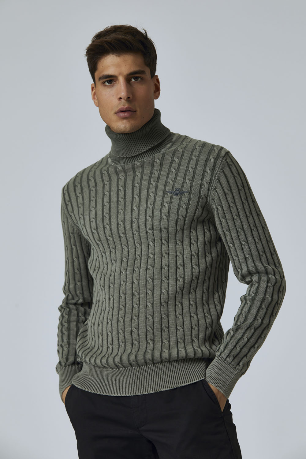 Kabelový úplet propůjčuje tomuto rolákovému svetru z čisté bavlny klasický a nadčasový styl a na hrudi je vyšitý ikonický orel s věžičkou. Perfektní pod bundu nebo k nošení samostatně pro ležérní, ale rafinovaný vzhled.