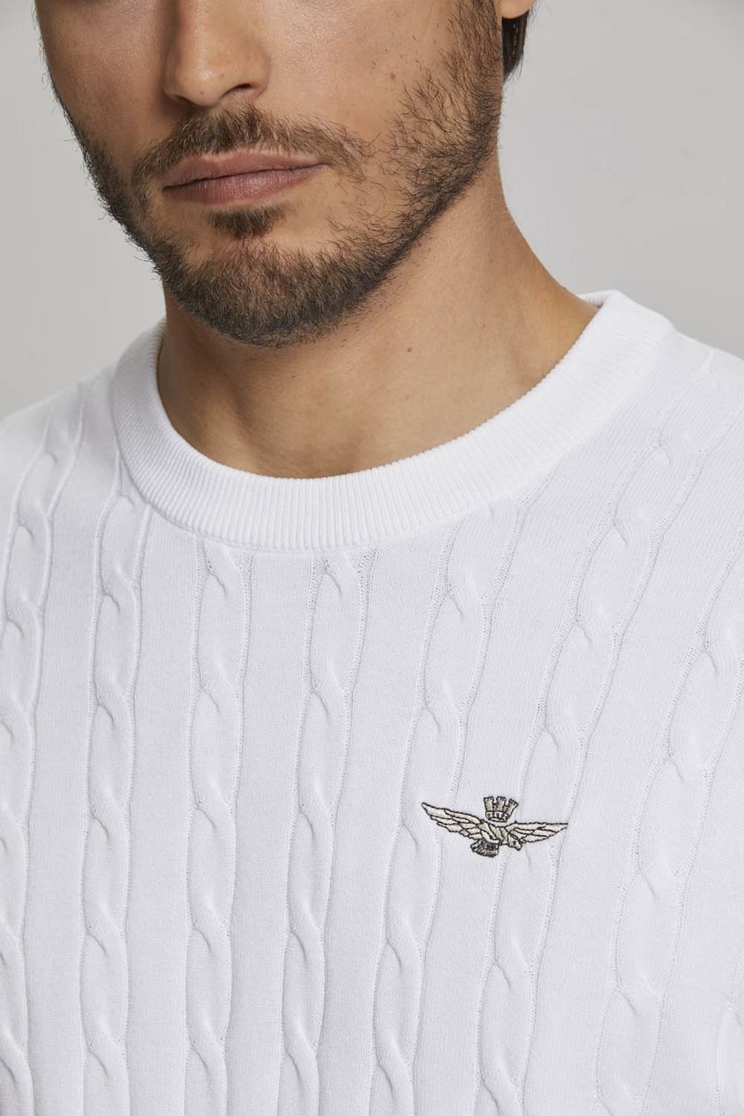 Úplet dodává tomuto bavlněnému svetru s výstřihem klasický a nadčasový styl.