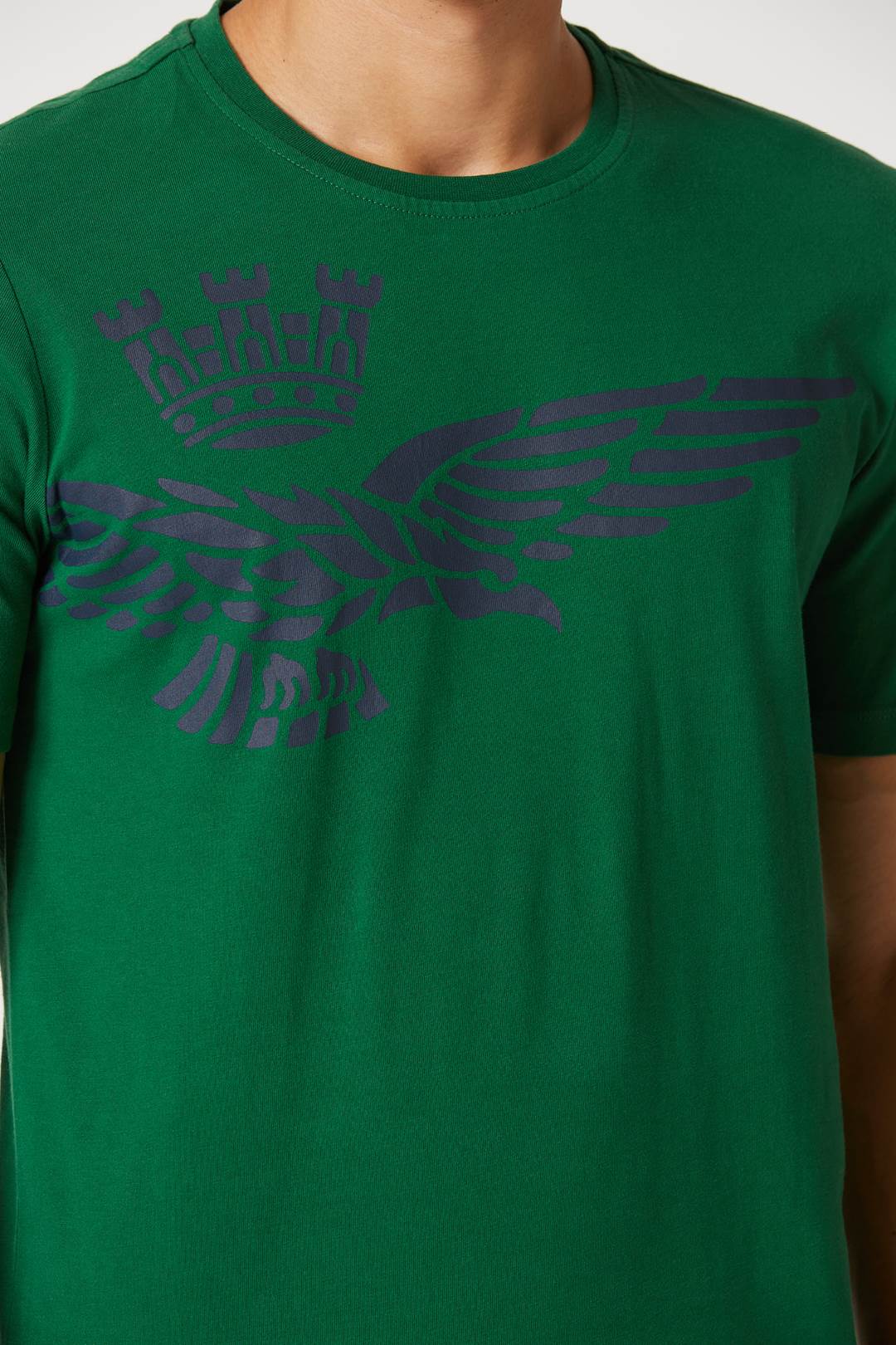Špičkový oděv, který rozhodně vynikne. Toto tričko s krátkým rukávem, vyrobené z kompaktní žerzejové bavlny, se vyznačuje originálním polobočním potiskem slavného orla s věží, symbolu pilotů italského letectva.