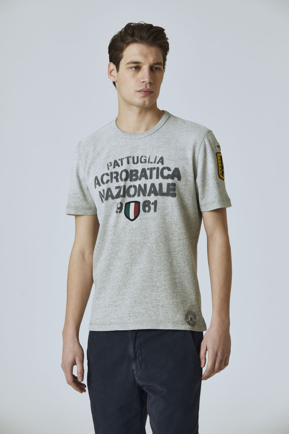 Tričko s krátkým rukávem PAN 1961 vypráví jedinečný příběh 313. akrobatické skupiny – národního akrobatického týmu Frecce Tricolori, narozeného 1. března 1961 pod velením majora Maria Squarciny na letišti Rivolto ve Friuli-Venezia Giulia.