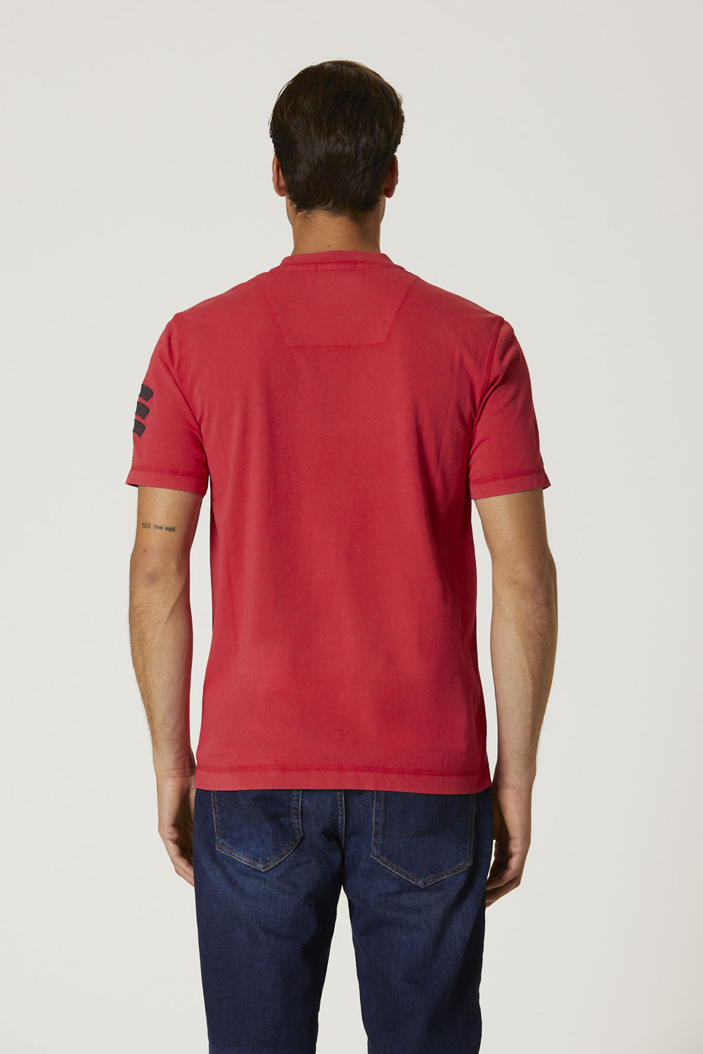 Slavnostní tričko, které patří k limitované edici kapsle věnované Getti Tonanti, italskému akrobatickému týmu založenému v roce 1953 v 5. křídle Villafranca di Verona. Potisky a nášivky, které jej zdobí, jsou archivní grafikou, která oděvu dodává exkluzivní a vintage vzhled.