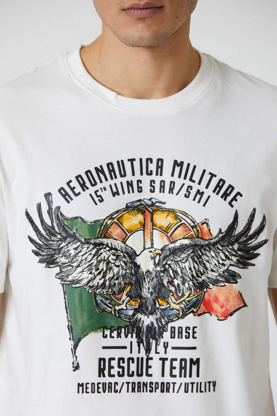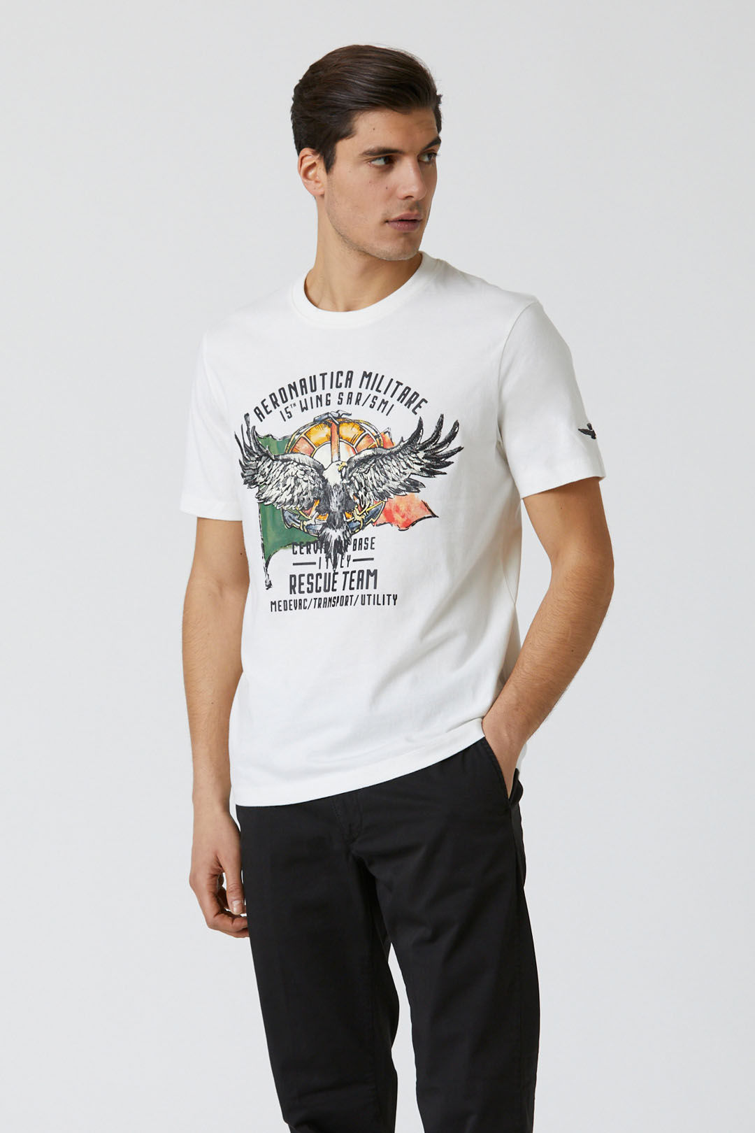 Uprostřed tohoto trička s krátkým rukávem z čisté bavlny se výrazně vyjímá symbol 15. perutě. Ideální doplněk pro ležérní kouzlo.