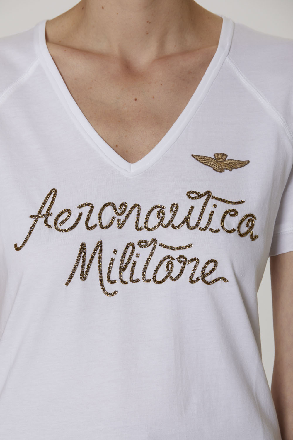 Extrémně ženský oděv, ideální na výlet s přáteli za teplých letních večerů. Toto měkké bavlněné tričko je obohaceno o výšivku loga a korálky pro okouzlující nádech.
