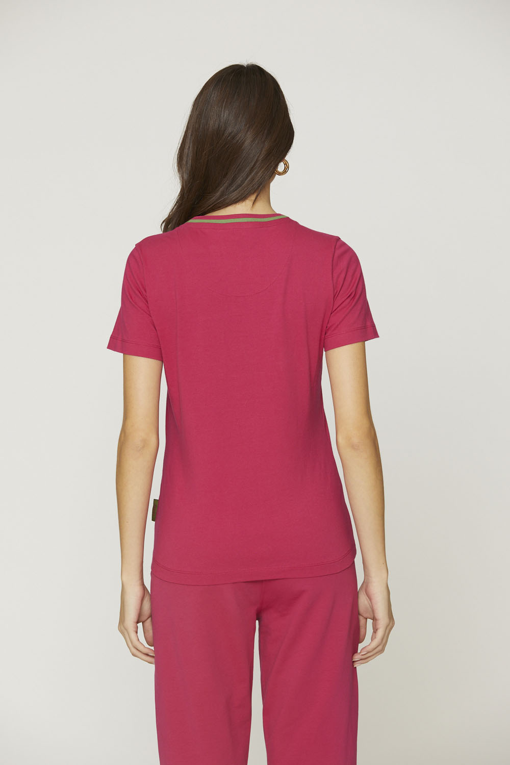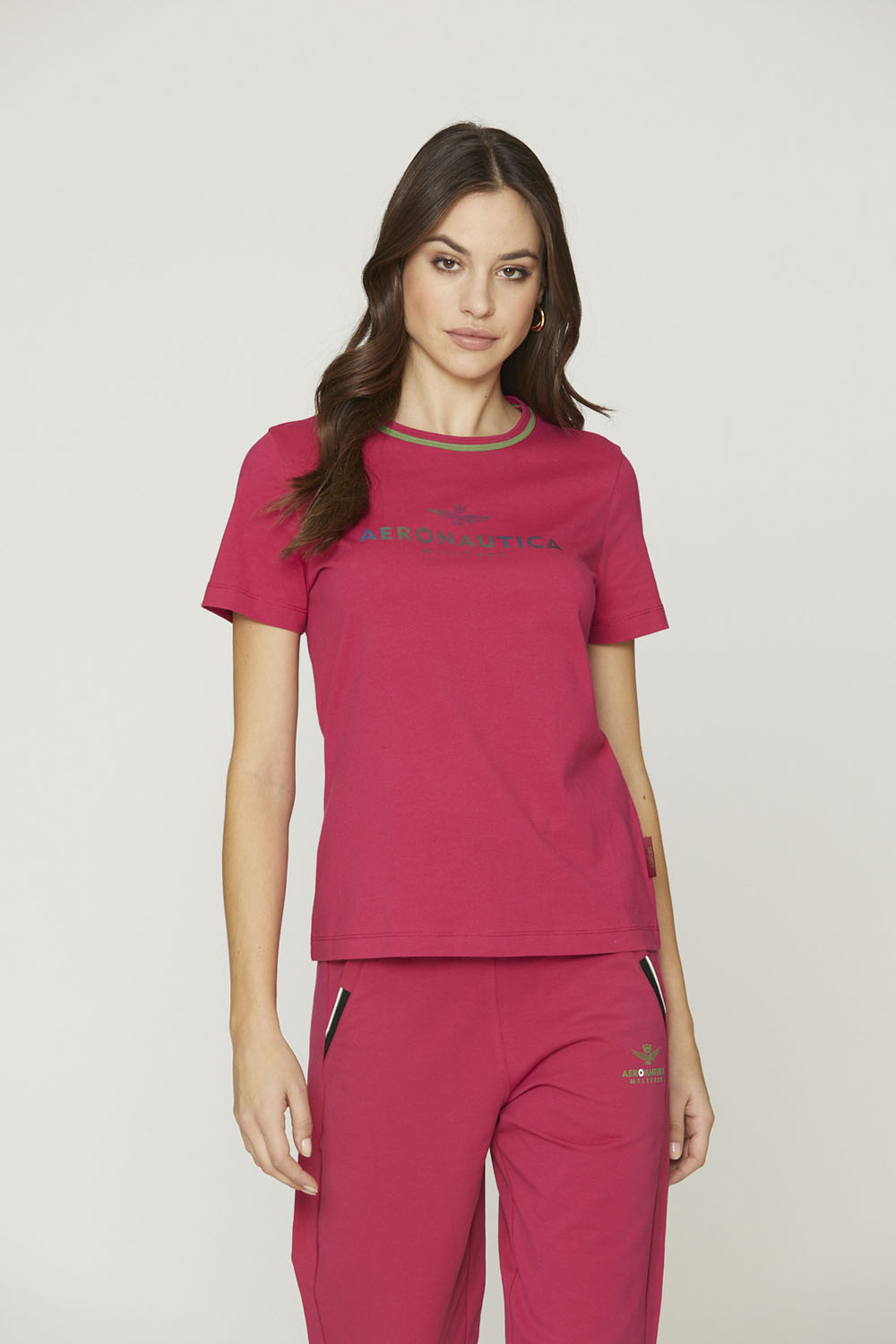 Toto jedinečné tričko je vyrobeno z elastického bavlněného žerzeje a má barevné kontrastní úpravy na výstřihu. Nejvýraznějším prvkem trička je barevně se měnící potisk loga na hrudi, který je navržen tak, aby dodal vašemu outfitu jiskru.